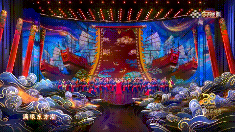 《潮起舞英歌》在保留英歌舞經典動作基礎上,借鑒流行音樂的曲式結構,融入潮州音樂家的創作,引用潮州大鑼鼓曲目《盛世歡歌》的部分樂句。38位來自廣東潮汕英歌隊的演員中,「小萌娃」領舞陳楷銘年僅7歲,激情四溢、氣場非凡;少女陳錦珊一襲粉裝,柔韌身姿暗藏千鈞之力。網友驚嘆:「鼓槌翻飛,步伐鏗鏘,氣勢如虹!」