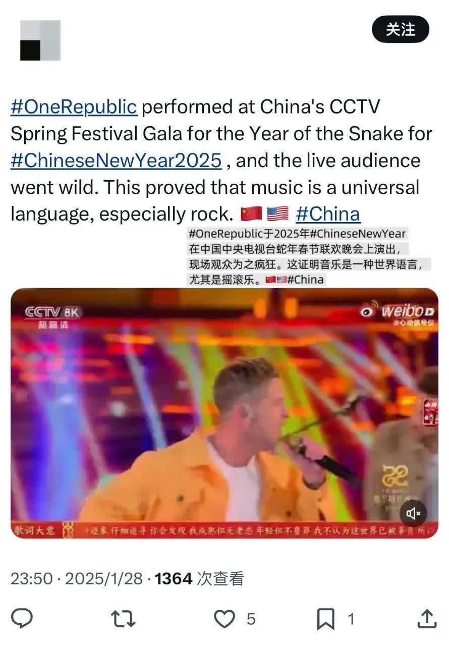 演出結束後,OneRepublic在社交媒體上發布現場照片,並附上了一句簡單而誠摯的祝福:「Counting Stars into the Chinese New Year!」(數星星來迎接春節)。樂隊主唱對武漢很有感情,曾化身大廚向粉絲分享熱乾麵的做法,這句祝福讓熱乾麵的芝麻香飄向「星際」。