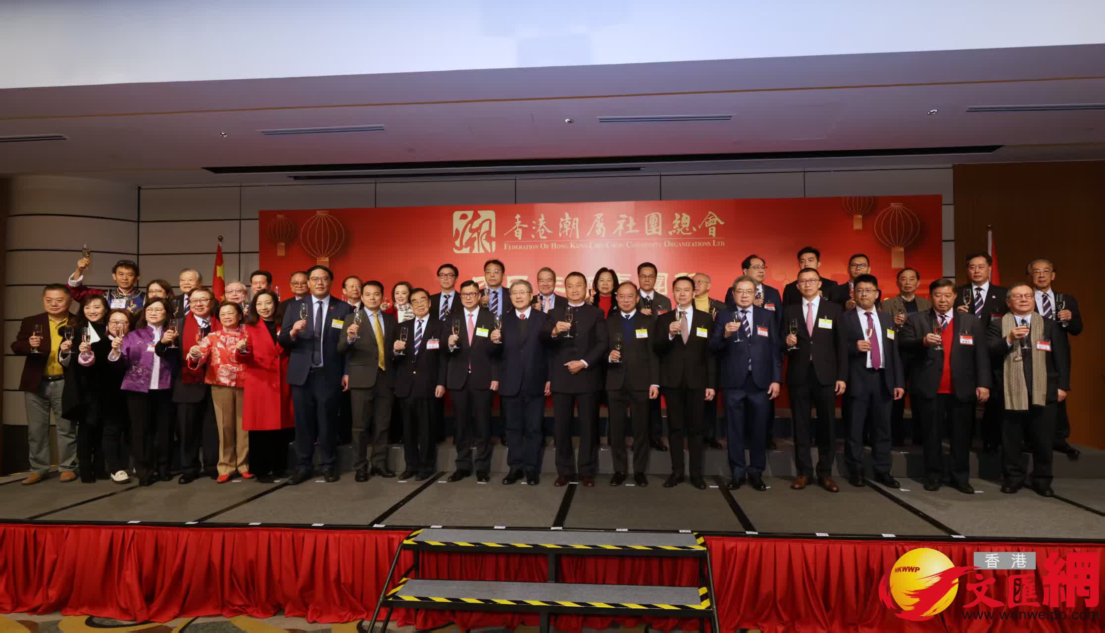 參與團拜的社團領袖和各界嘉賓齊祝國家富强,香港繁榮稳定,蛇年和諧團結、社會進步,家家安居樂業,和和氣氣,開開心心。