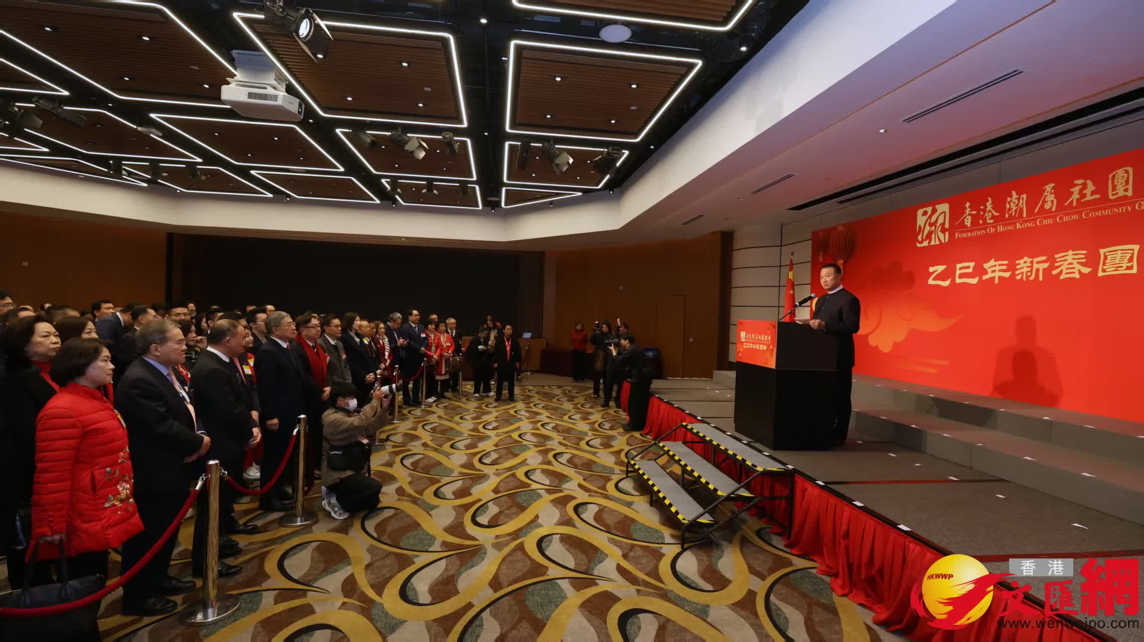 團拜在莊嚴的國歌聲中拉開序幕,卓永興致辭時說,香港的潮籍鄉親至今已經超過一百萬,具有龐大影響力,是推動香港經濟走向繁榮強大的重要力量,他們尤其重視弘揚傳統文化,因而令潮汕文化成為香港文化的重要部分。他稱讚總會在文化保育、傳承,以及社區建設方面的努力有目共睹。