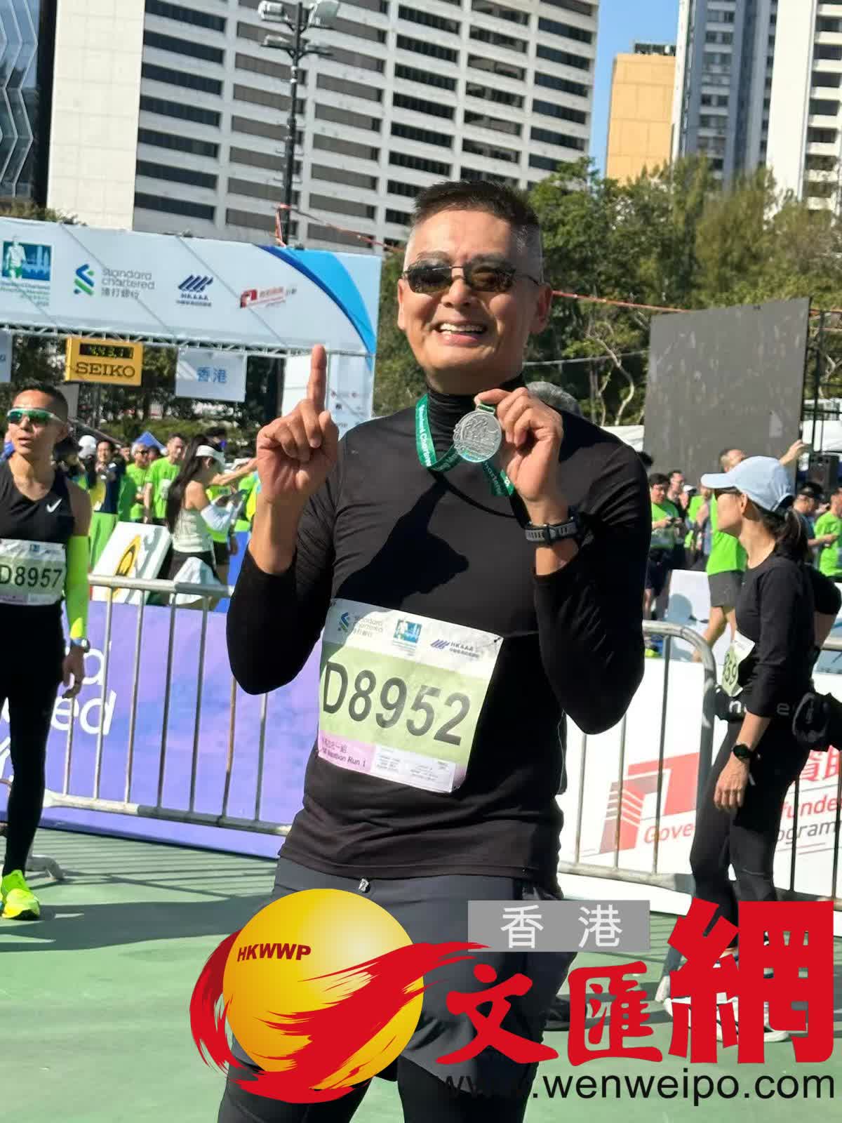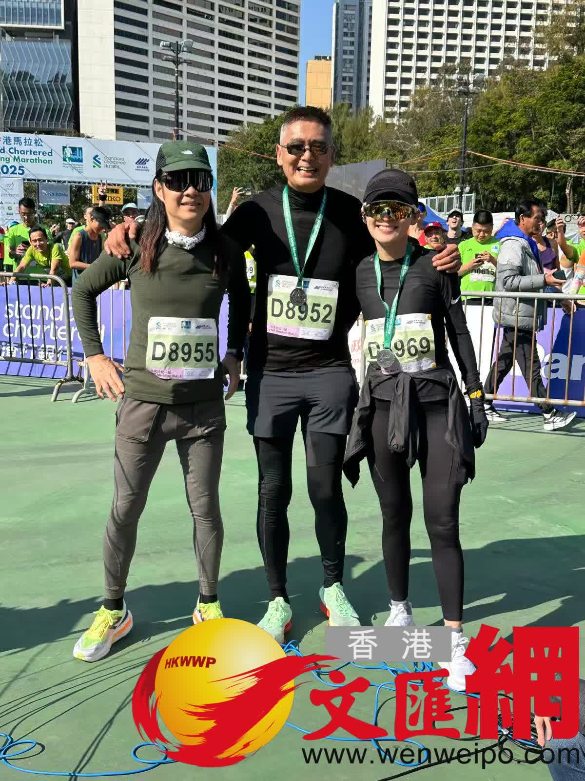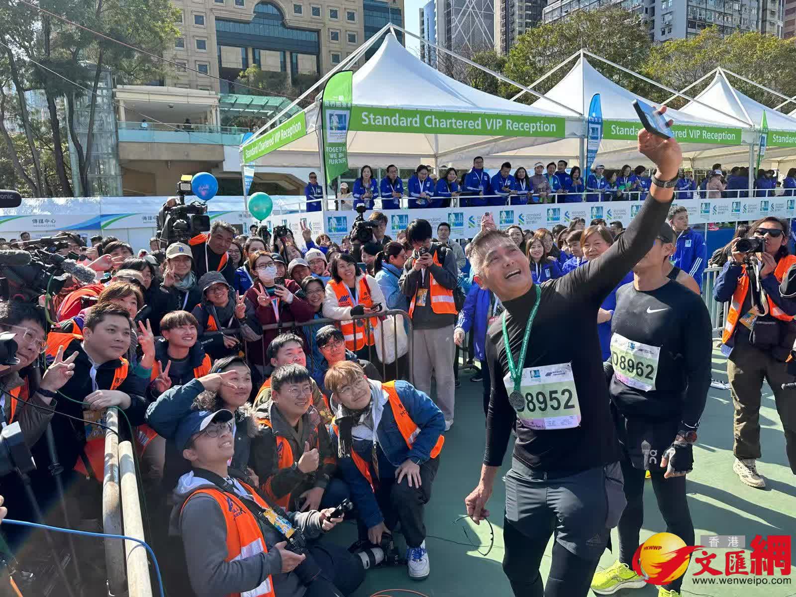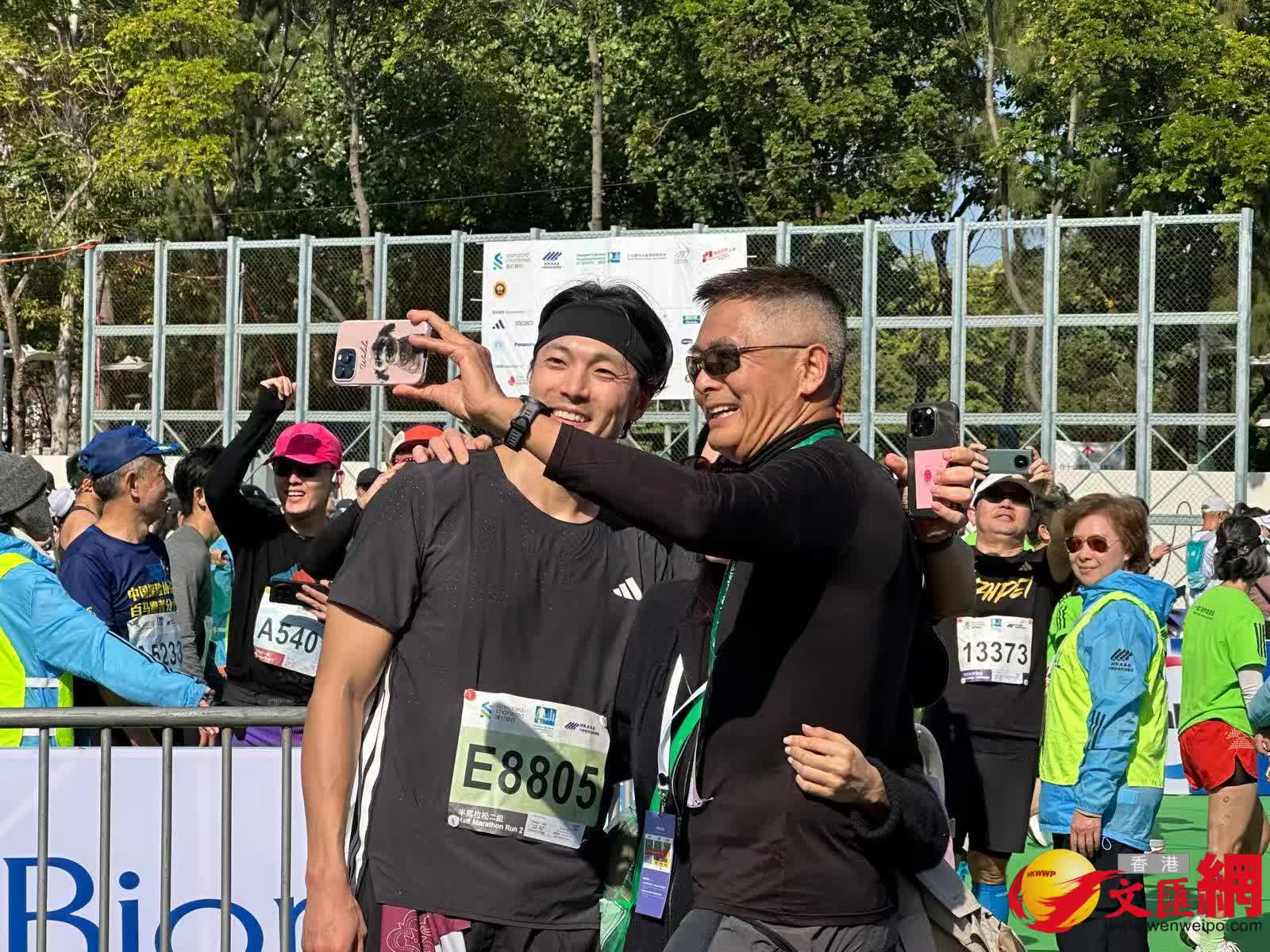 香港文匯報訊(記者 子棠)周潤發(發哥)一向是馬拉松最受歡迎的跑手藝人,當他跑畢《渣打香港馬拉松 2025》半馬賽事抵達維園終點站,全場響起一片掌聲和歡呼聲;黃浩然、蔡一智和周家怡更專誠在入口等候跟發哥握手。發哥稱讚天公做美,跑得很涼快和舒服,自己狀態亦很fit。問到是否個人最好成績?他否認指不是,用了兩小時22分完成(大會時間為2小時24分33秒),目標是明年以2小時20分完成。發哥認為今次的賽道並不很辛苦,只有部份有少許斜路,加上每日都練跑半小時;但全馬賽就不會考慮,因為希望里數能在兩個小時達標,並指如果跑到80歲也可以跑兩個小時已經很好了。