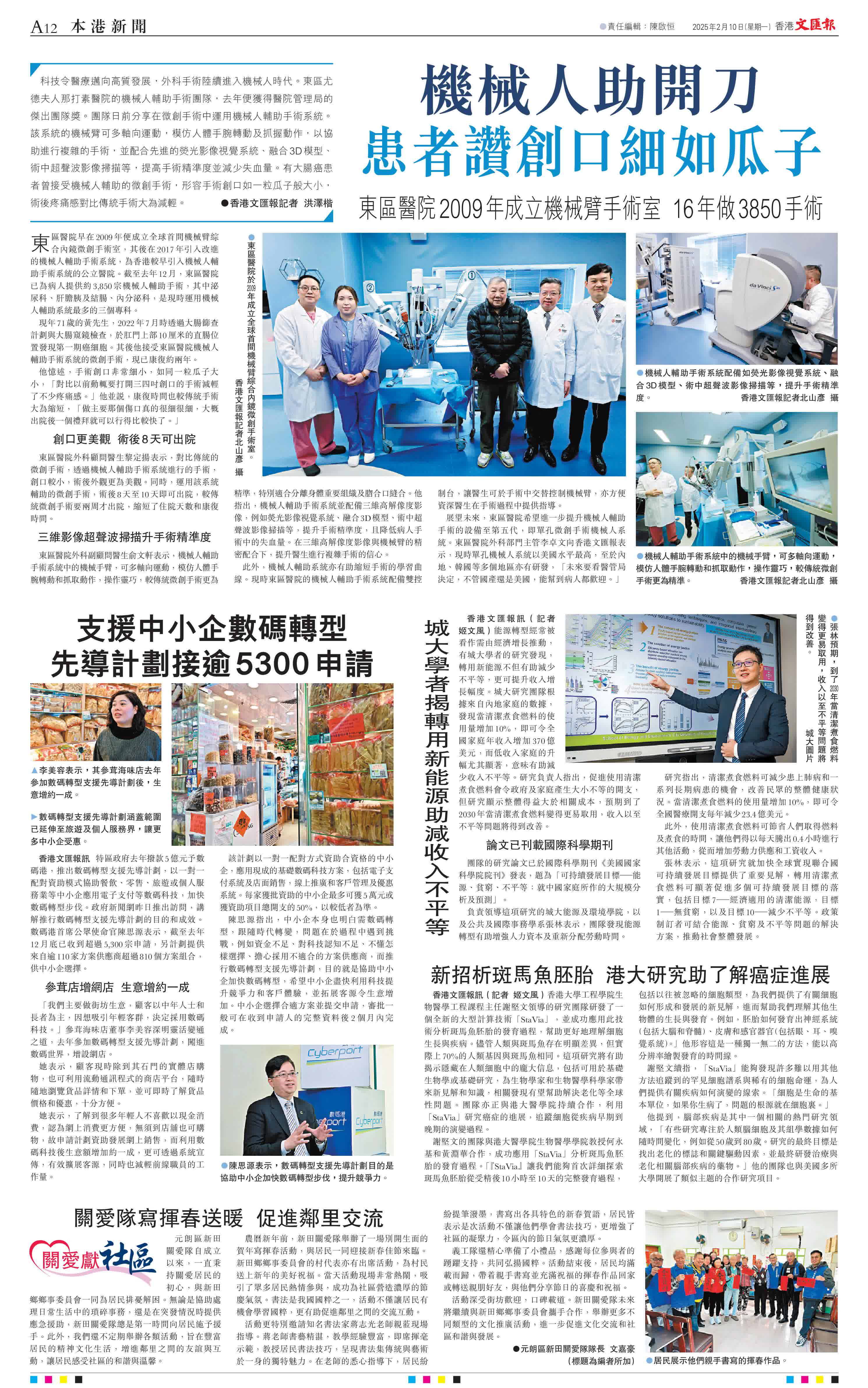 東區醫院早在2009年便成立全球首間機械臂綜合內鏡微創手術室,其後在2017年引入改進的機械人輔助手術系統,為香港較早引入機械人輔助手術系統的公立醫院。截至去年12月,東區醫院已為病人提供約3,850宗機械人輔助手術,其中泌尿科、肝膽胰及結腸、內分泌科,是現時運用機械人輔助系統最多的三個專科。