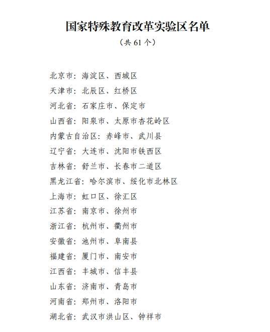 記者2月10日從教育部獲悉,經各地自主申報、省級推薦、網絡公示等環節,認定北京市海淀區等61個國家特殊教育改革實驗區。