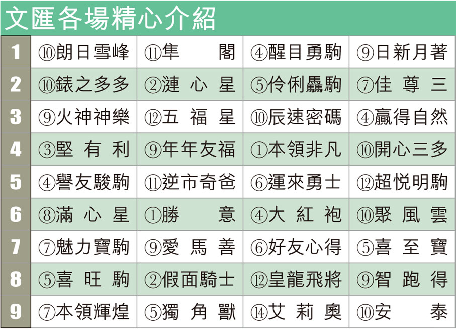 儘管泥地賽事編排較少,惟蔡約翰從來不會缺席,廄中總有一小批馬,被安排作泥地部隊。從較早期「華卓睛」、「紅運大師」,到近季「旋風飛影」、「快錢」等,皆長期肩負泥地賽搶分之責。今晚賽事此廄馬,「得心知遇」與「魅力寶駒」,以至排位時退出的「超眼光」,明顯便屬於這類兵種。