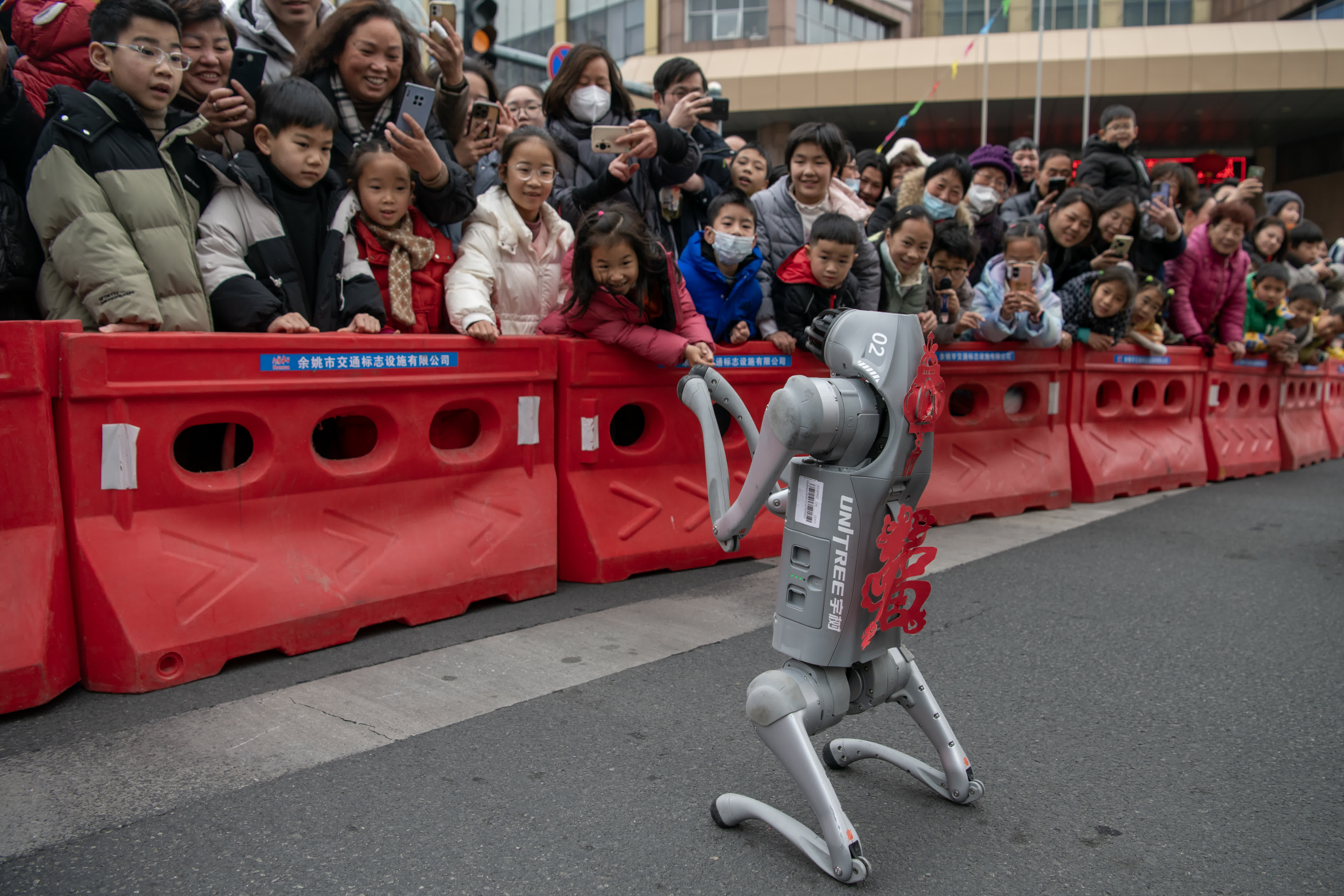 (香港文匯網記者連慜鈺 杭州報道)11日,「陽明故里余姚年·幸福巡遊鬧元宵」活動在姚城街頭精彩上演,余姚的各項非遺民俗表演輪番上陣,「刷爆」了市民遊客們的朋友圈。活動中,cosplay秀團隊和宇樹科技機器狗的加入,為這場傳統的非遺巡遊增添了一抹現代科技的色彩。機器狗「笨笨」身披余姚剪紙,穿梭在巡遊隊伍中,不時與觀眾互動,引得現場觀眾陣陣驚嘆。