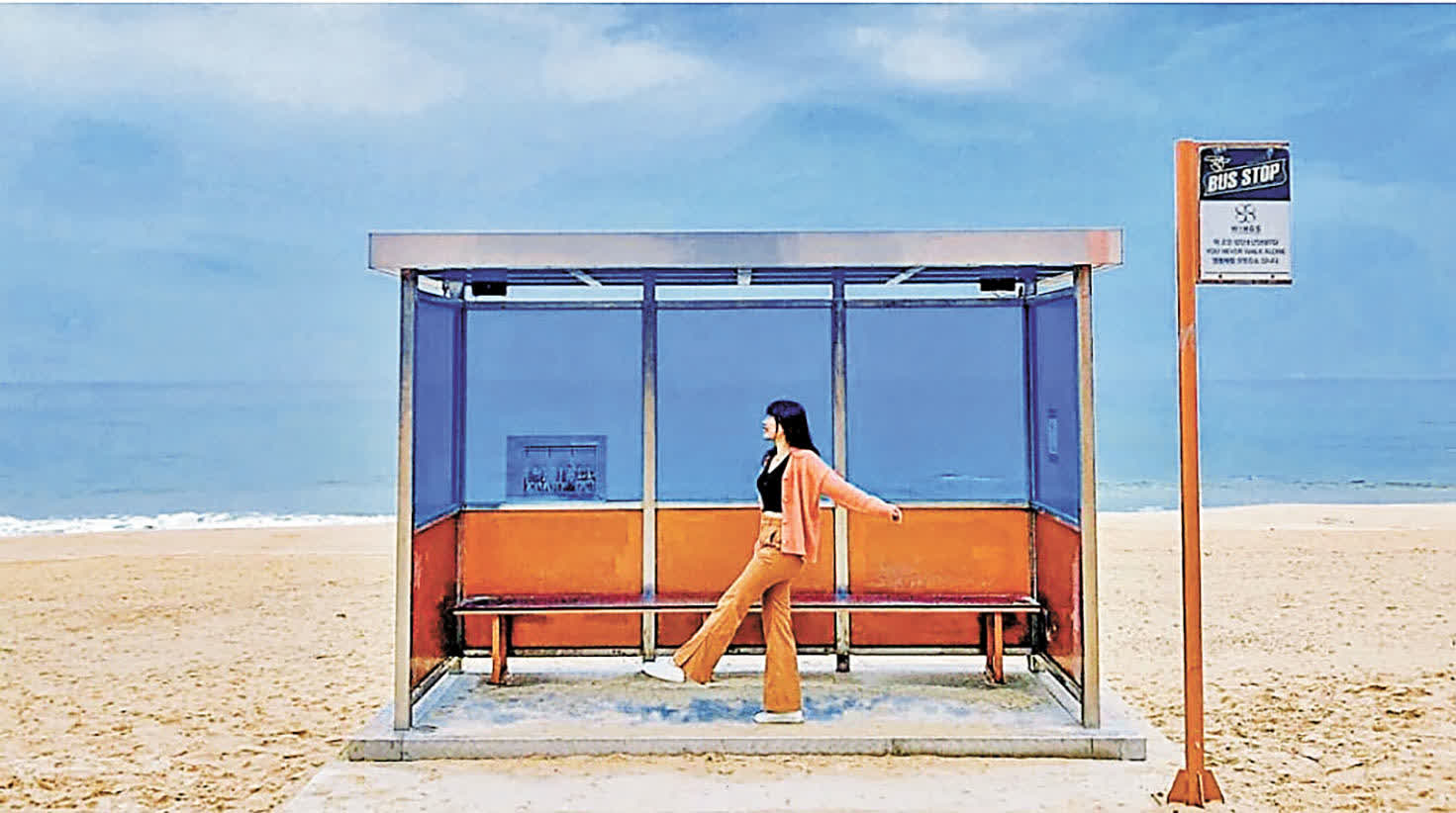 江陵市為了讓A.R.M.Y(BTS防彈少年團粉絲)有更多旅遊打卡勝地,特意在注文津海邊的江陵市青少年海洋研修院附近建立了BTS防彈少年團的紀念巴士站。這個巴士站並非真正用於巴士停靠,而是為了重現BTS專輯照片中的著名場景,因此A.R.M.Y們不用等巴士來來去去,隨時都能拍出理想的照片!