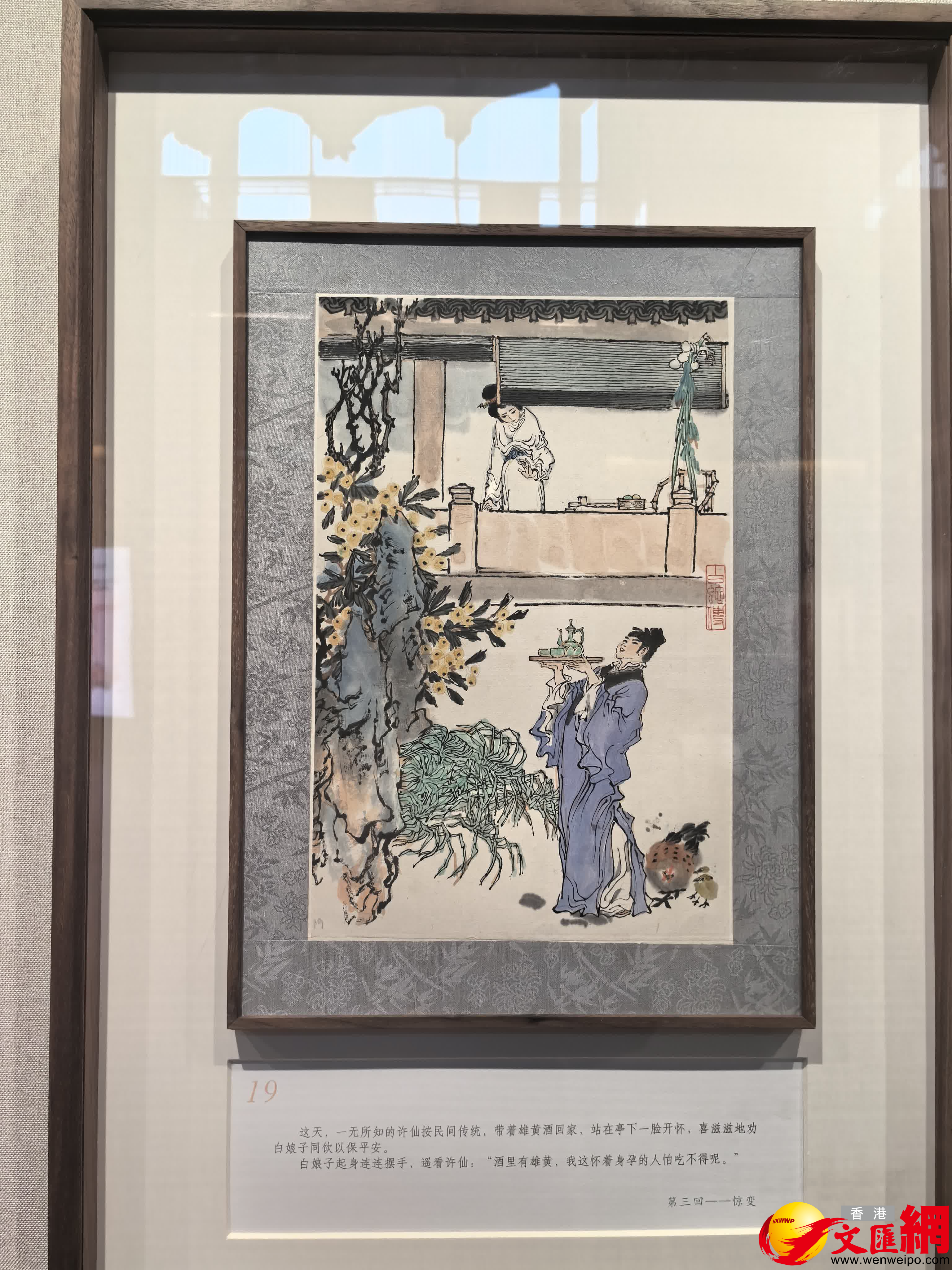 作為戴敦邦的入室弟子,程澄亦將新近精心繪製的《久安長治圖·白娘子》捐贈予杭州國家版本館。圖中白娘子溫婉柔美,牡丹、桂花等名花異卉寓意富貴祥瑞、前程錦繡,九隻鵪鶉則諧音「久安」,全圖充分表露出對於偉大祖國長治久安、物阜民豐的美好期盼和溫馨禱祝。程澄介紹說,「戴老正在創作《紅樓續夢》,他把之前《紅樓夢》沒有創作過的,沒有畫的一些章節都補齊,是戴老對《紅樓夢》更深理解的一些畫面。目前線描稿已經畫好,戴老每天3點多起來開始工作,為線描稿上顏色。同時戴老還在創作《道德經》81章,目前已經創作60餘幅。這套《道德經》81章,每一張都是尺幅比較大的作品,最小的2米×2米,大多數的都是2米×3米,甚至有3米×3米的大作。戴老的敬業精神感人至深,戴家樣精神引領我們做為弟子不懈精進!」