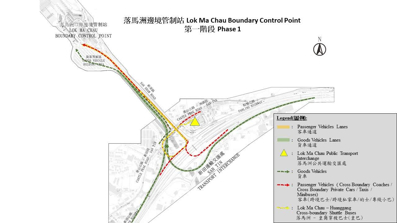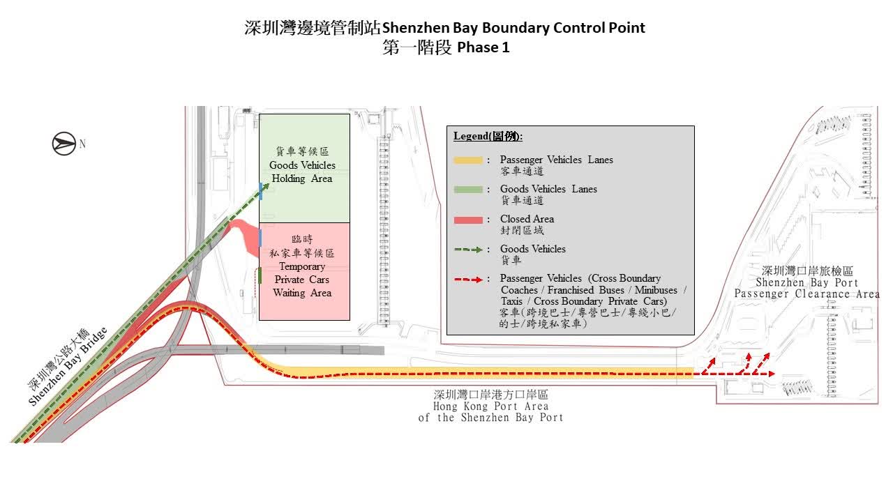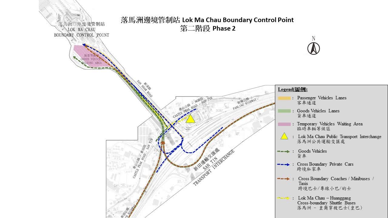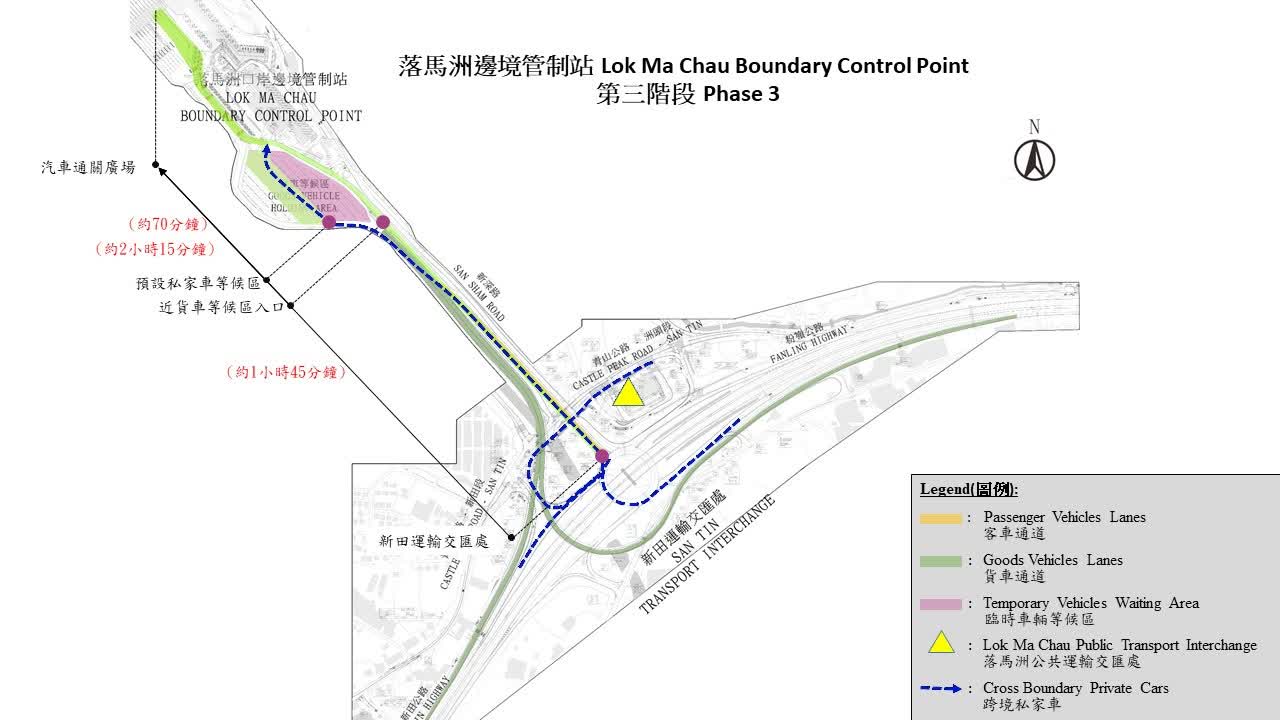 ─對跨境私家車及貨車的交通安排維持不變,即分別沿客車通道經新田交匯處或貨車通道進入管制站;