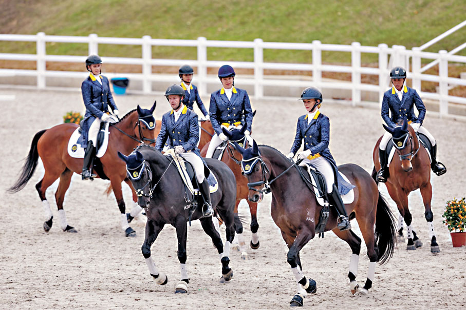 而馬術表演中包括有香港賽馬會樂韻騎乘表演,由六匹參加「馬會退役賽駒駿展新生計劃」(RESTART )的退役馬匹參與,牠們將跟隨音樂在六分鐘內以不同步法和走位進行團體表演,是首次有退役馬匹以這個方式在港演出。其中負責策騎退役馬匹「銳闖」的馬會雙魚河馬術中心高級馬術策騎員葉子傑表示,他們約在半年前開始籌備今次表演,挑選適合表演的退役馬匹,並在兩個多月前開始訓練,訓練期間會讓馬匹聆聽音樂,亦會播放人群聲浪,讓馬匹熟習觀眾的掌聲。「我們會讓參與馬匹互換位置,表演講求馬匹之間及與策騎員的合拍,講求團隊精神。」他又指,今次表演是一個機會讓退役馬匹展現牠們的第二職業,並期望透過活動讓更多市民認識馬術運動。