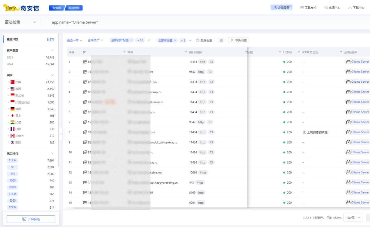 (香港文匯網記者 馬曉芳)記者14日從奇安信獲悉,隨着DeepSeek大模型的迅速流行,越來越多的公司和個人選擇將該開源大模型私有化部署。奇安信資產測繪鷹圖平台監測發現,8971個Ollama大模型服務器中,有6449個活躍服務器,其中88.9%都「裸奔」在互聯網上,導致任何人不需要任何認證即可隨意調用、在未經授權的情況下訪問這些服務,有可能導致數據洩露和服務中斷,甚至可以發送指令刪除所部署的DeepSeek、Qwen等大模型文件。