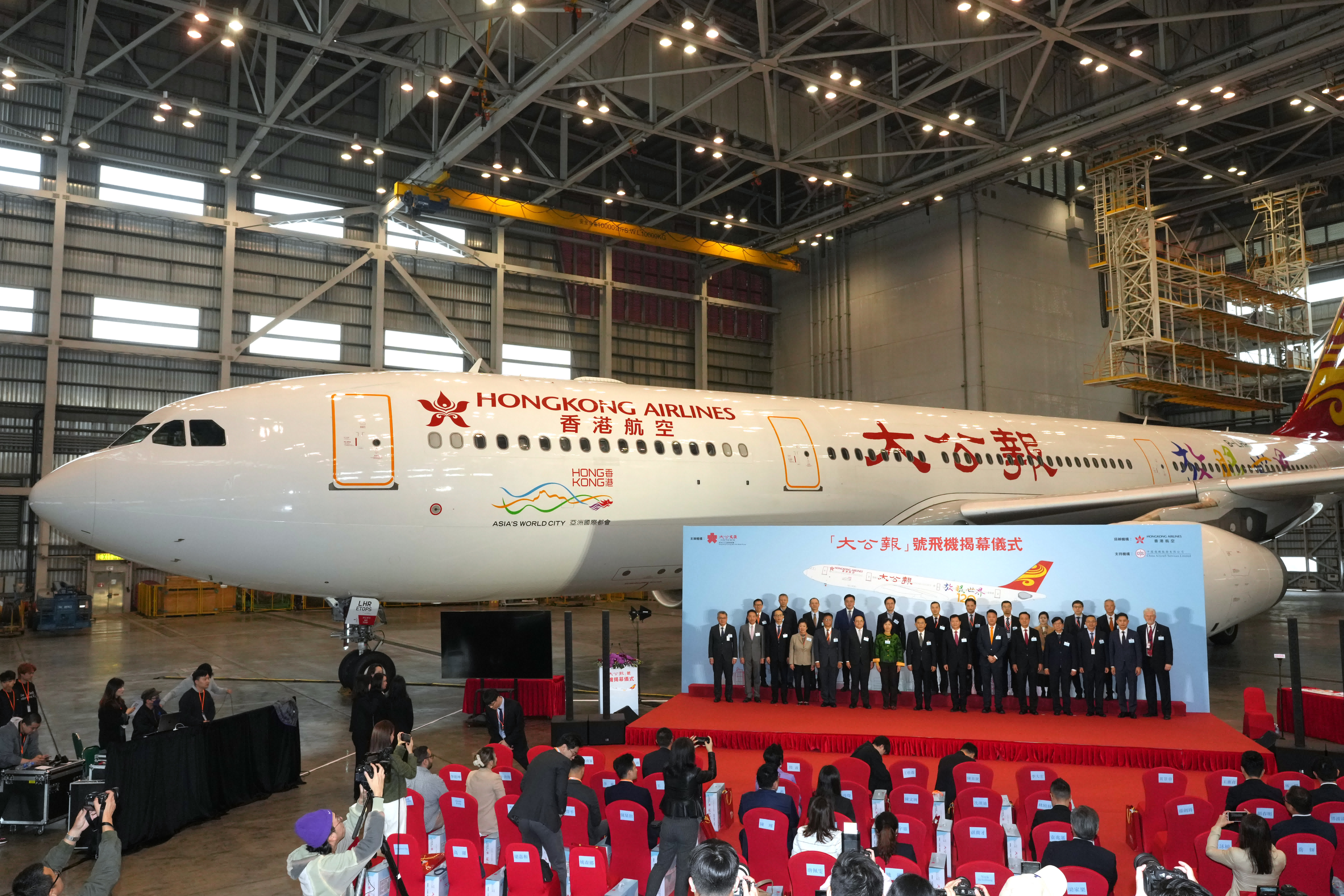 香港航空主席閻波說,今年是抗戰勝利八十周年,此次港航與《大公報》的合作,旨在激發大家要毋忘歷史,秉承先輩遺志,共同建設更美好中國。他介紹說,「大公報」號飛機,是在一架A330客機上作專屬噴繪設計,透過這架客機於亞太、乃至北美地區超過30個主要城市不同航線的營運,將香港精神、香港故事帶到世界各地。他形容,今次雙方合作,將媒體責任與航空事業相結合,弘揚愛國主義教育,深化國家認同,為香港的繁榮穩定和國家的未來發展貢獻力量。