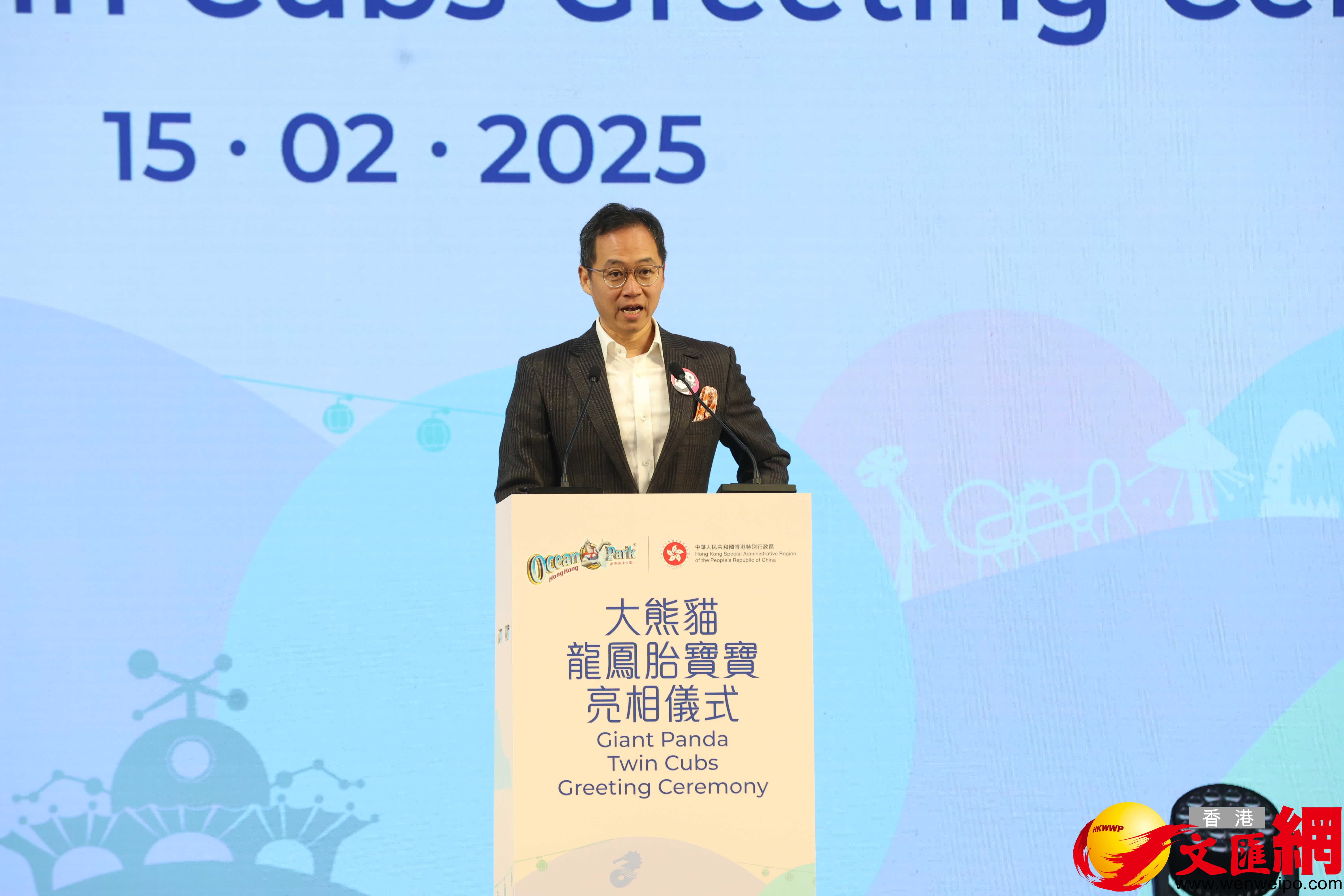 龐建貽表示,6個月一眨眼便過,宣布「家姐」、「細佬」出生好像不是很久以前的事,看着寶寶出生,體重逐步增加,現時懂得爬樹、四圍走,牠們的成長就好像家人一樣。香港和世界各地的大熊貓愛好者聯繫在一起,可以進一步推廣香港的旅遊和文化。