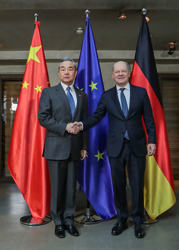 王毅首先轉達了中國領導人對朔爾茨的親切問候,表示中德高層互動頻繁,務實合作保持良好勢頭,取得積極成果,符合兩國人民根本和長遠利益。當前單邊主義、保護主義抬頭,但世界走向多極化勢不可擋。作為戰略夥伴,中德、中歐更應加強團結、協調與合作,堅持自由貿易,踐行多邊主義,維護聯合國權威。德國是具有全球影響的歐洲大國,中方樂見德國在多極格局中發揮重要作用,願同德方深化全方位合作,推動雙邊關係向前向好發展,維護全球和平穩定,為動盪不安的世界提供更多確定性。