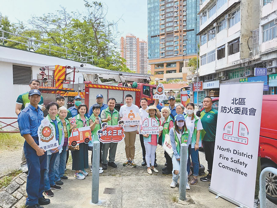 粉嶺聯和墟社區有不少缺乏管理和完善消防設備的舊樓,消防安全值得關注。為了提高居民的消防安全意識及提升樓宇消防安全水平,聯和墟關愛隊一直致力協助在社區推廣樓宇消防安全信息。我們多次聯同消防處及北區防火委員會,到區內的「三無大廈」向住戶講解「應急三識」(即「識滅火」、「識自救」及「識逃生」),並派發「防火三寶」(即滅火筒、滅火氈及獨立火警偵測器),希望藉此提升居民對消防安全的認識和應對能力。
