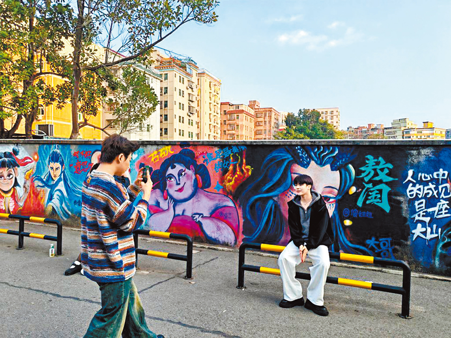 身披火焰的哪吒、冷峻的敖丙、詼諧的太乙真人等角色躍然牆面,彷彿下一秒即將「破壁而出」,這裏已成為深圳市民爭相打卡的「網紅地標」,單日吸引超千人駐足,相關視頻在小紅書等平台獲讚超10萬次。