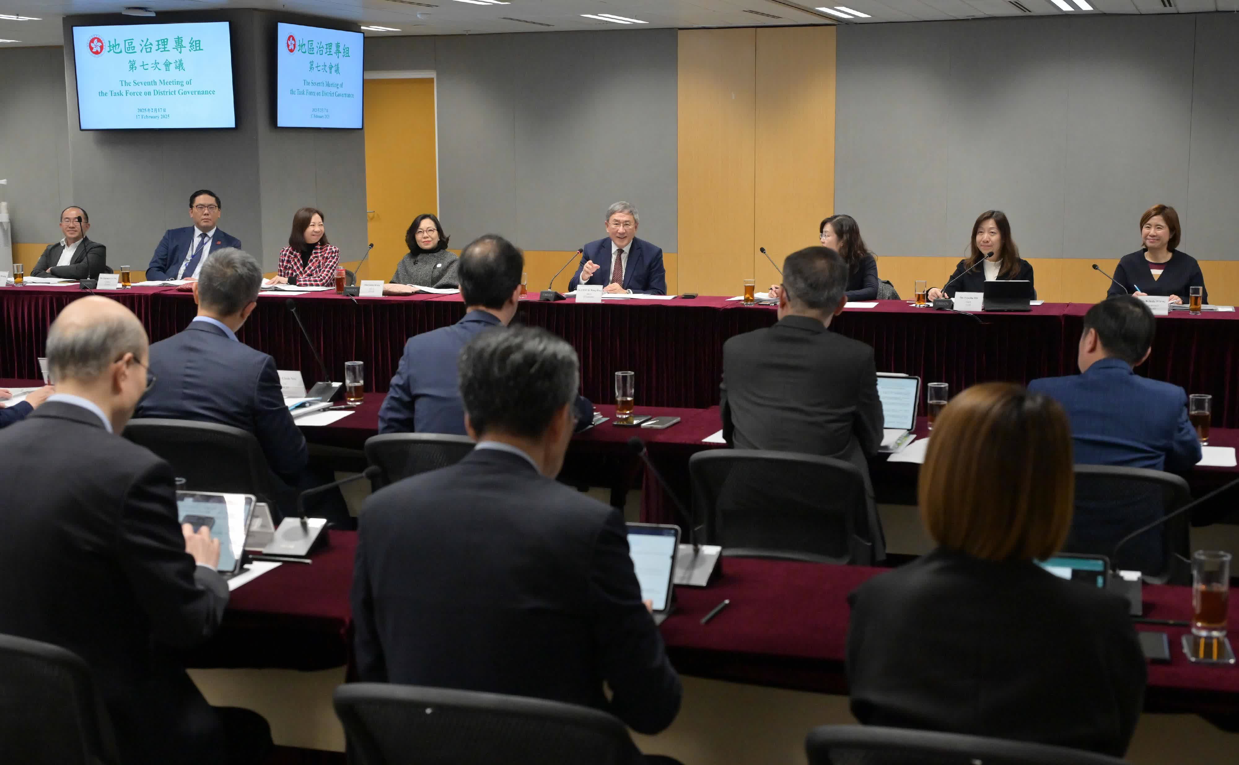 政務司副司長卓永興今日(17日)主持「地區治理專組」第七次會議,跟進「地區治理領導委員會」交付的工作,統籌各部門就地區關注的議題制定具體落實措施,並持續檢視工作進度和績效。