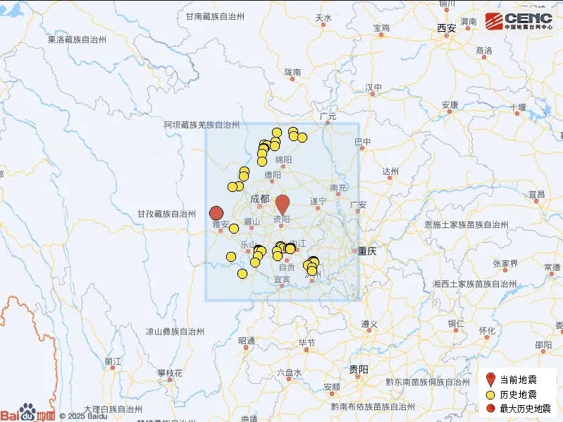 歷史地震:根據中國地震台網速報目錄,震中周邊200公里內近5年來發生3級以上地震共131次,最大地震是2022年6月1日在四川雅安市蘆山縣發生的6.1級地震(距離本次震中165公里),按震級大小前50次歷史地震分布如圖: