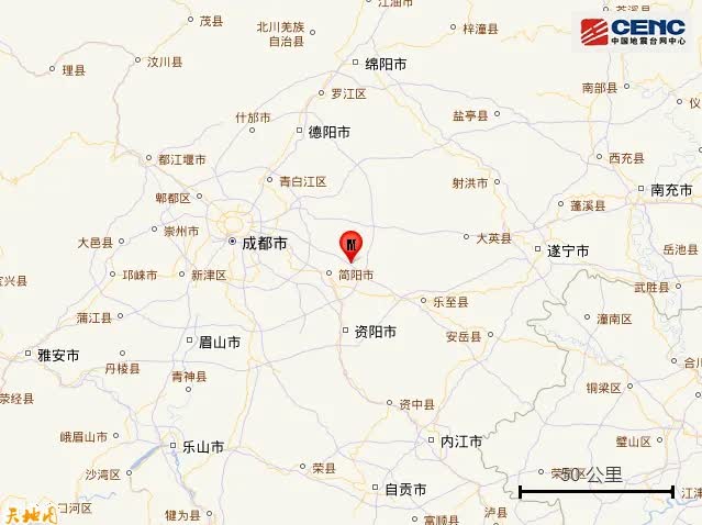 據中國地震台網正式測定,2月17日19時3分在四川成都市簡陽市發生3.0級地震,震源深度22公里,震中位於北緯30.46度,東經104.66度。