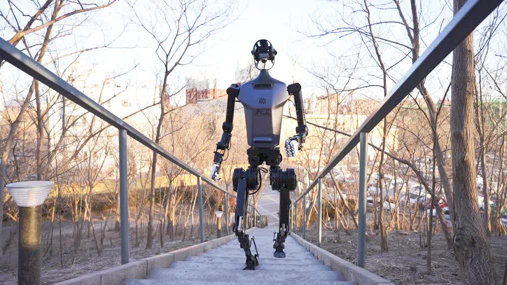 日前,「天工」走出實驗室,來到戶外,成功挑戰134級階梯的攀登,絲滑爬上北京海子牆公園最高點。過去,人形機器人適應複雜地形一直是難題。「天工」爬起台階為何如此絲滑?