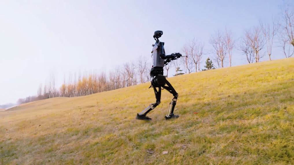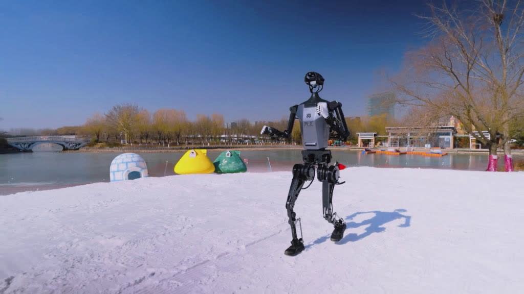感知行走的突破,不僅能使機器人走得穩、跑得快,還能在受到外界干擾時也不會摔跤、跌倒。即使在光滑的雪地上,從不同方向對其施力,「天工」依然能夠保持平衡而不會摔倒、滑倒。