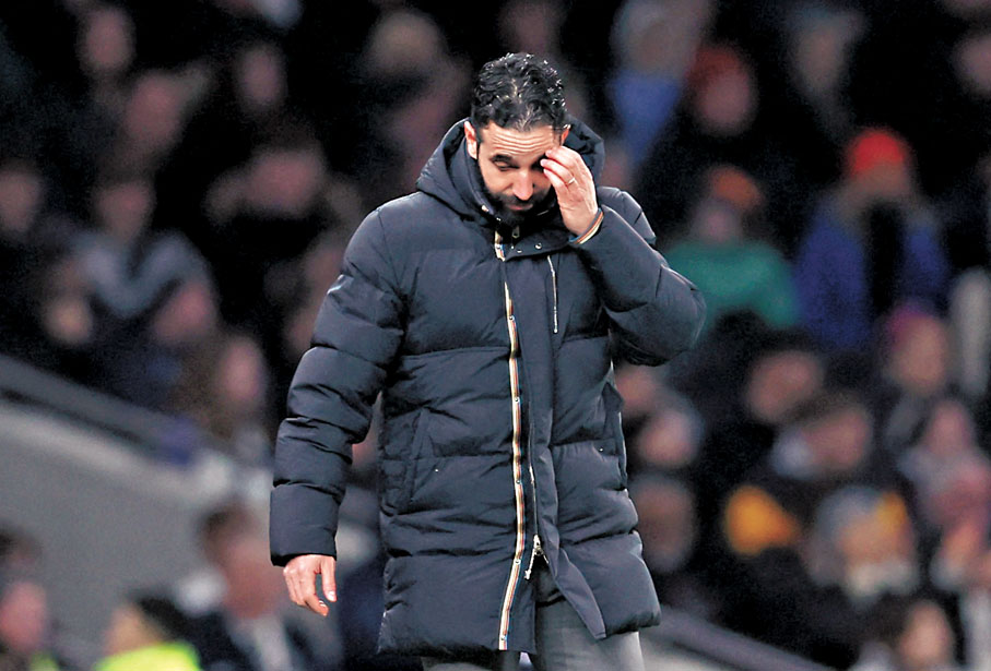 傷兵滿營的曼聯於本港時間17日凌晨英格蘭超級聯賽作客以0:1不敵熱刺,聯賽榜跌至第15位,25場英超輸了12場,是自1973/74年球季以來,頭25場聯賽成績最差的一季,該季正是球隊上一次由頂級聯賽降班之時,令人擔心「紅魔」再如此下去真的會否有要護級之虞。對於在苦無對策之下被批評不敢派上年輕人放手一搏,主帥艾摩廉則以「謹慎」來回應調動保守的爭議。另一邊廂,被曼聯棄用的安東尼則在新聯賽踢得順風順水,猶如是向艾摩廉補多刀。●香港文匯報記者 葉詩敏 綜合報道