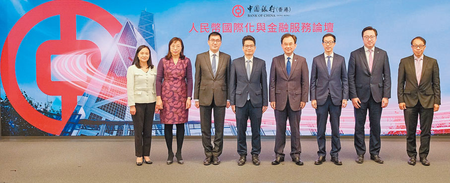 中銀香港昨舉辦「人民幣國際化與金融服務論壇」,聚焦探討人民幣在促進經濟合作及金融創新的應用及機遇,吸引近百名來自不同金融機構的代表參加。中銀香港副總裁陳文致辭時表示,人民幣國際化為香港國際金融中心發展注入強勁動力,香港在人民幣國際化進程中發揮着至關重要的樞紐作用,人民幣產品日益豐富,並向周邊地區和全球市場輻射香港人民幣業務優勢。