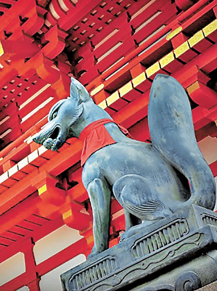 位於京都「稻荷山」上的「伏見稻荷大社」,是日本多達30,000多間「稻荷神社」的總本宮,已經有超過1,300年的歷史。大多數觀光客從入口處的「樓門」、「正殿」,一路穿越「千本鳥居」後走到「奧社奉拜所」即折返。而包括京都「伏見稻荷大社」在內,全日本的稻荷神社皆祀奉着保佑五穀豐收、商業繁盛的「稻荷神」。稻荷神社的2大特徵,分別為大小不一的朱紅色鳥居以及境內隨處可見的狐狸雕像。