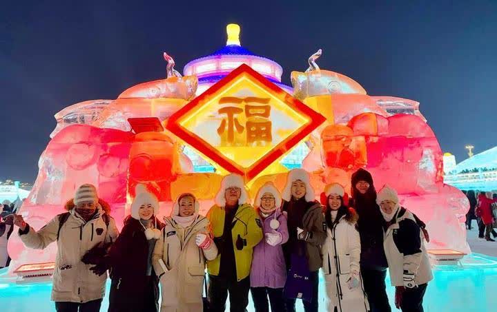 泰國、馬來西亞等熱帶國家遊客則選擇去「冰城」哈爾濱嘗試溜冰、滑雪、打陀螺、看冰雕,盡情享受冰雪樂趣。