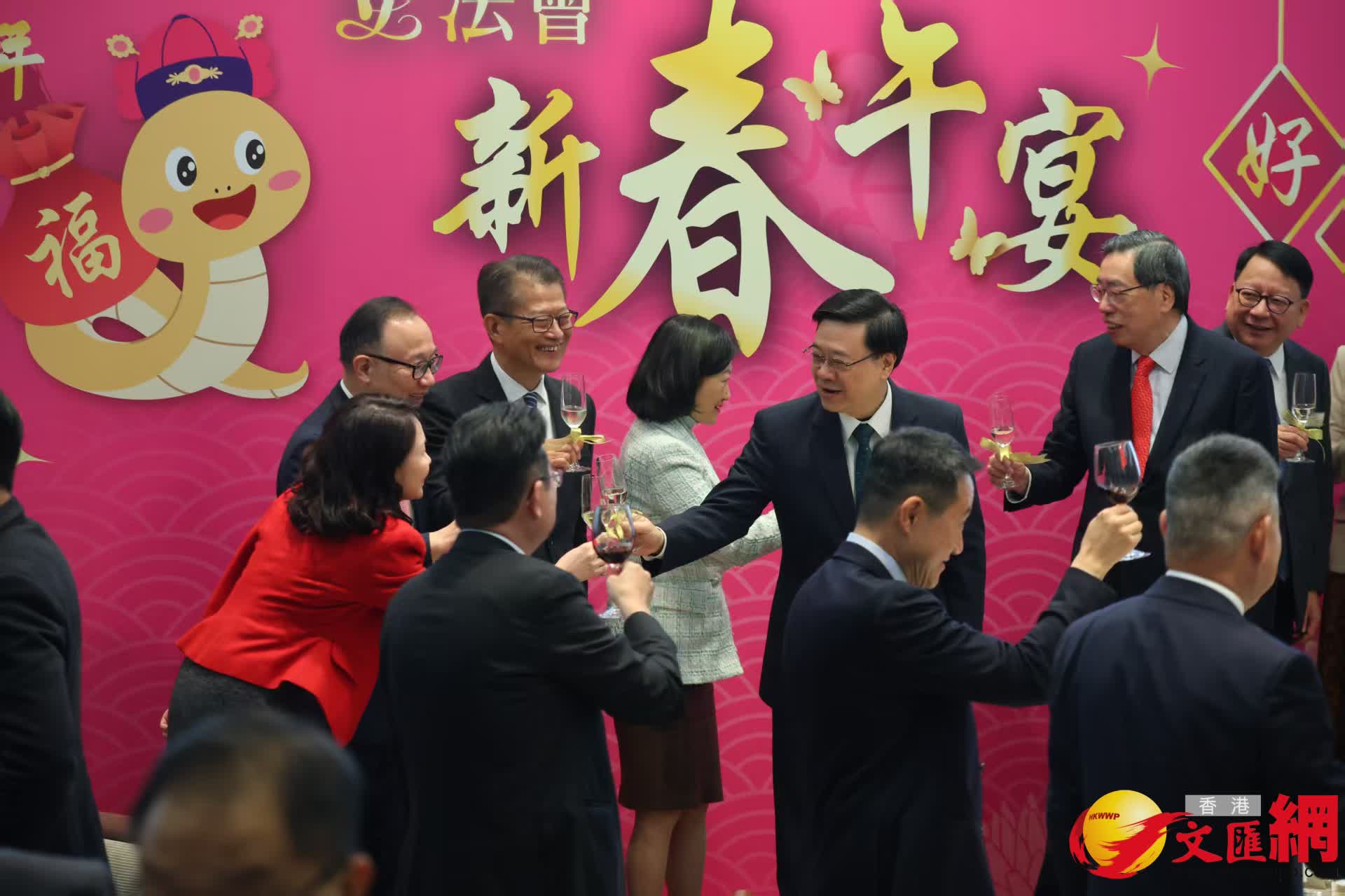 香港文匯報訊 (記者 黃子龍)立法會舉行新春午宴,行政長官李家超與多名政府官員出席。立法會主席梁君彥致辭時表示,踏入蛇年,香港好事連連,國家新質生產力呈現爆發式的增長,令人驚喜,帶動本港的股市表現優於全球的同行。剛過去的星期日,「Made in Hong Kong」的大熊貓正式與市民見面,姐姐、弟弟健康活潑,令到全城的熱潮「熱上加熱」。行政長官李家超早前已預告,下個月即是香港的「超級三月」,打頭陣的就是香港歷來最大的基建項目「啟德體育園」正式開幕,盛事、喜事將會一浪接一浪。