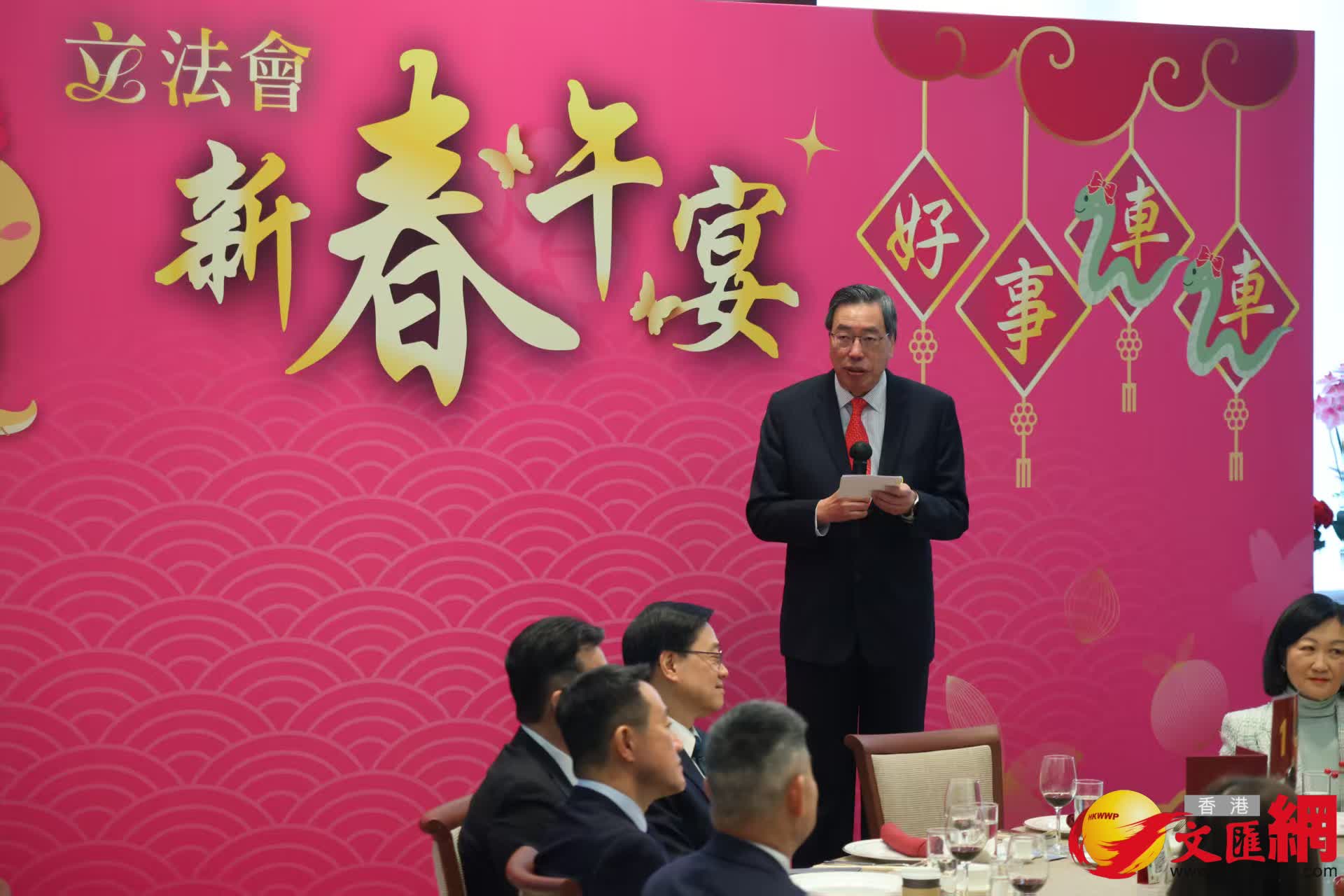 他說到,今屆立法會是完善選舉制度後產生的,轉眼間已經踏入最後一年,然而立法會不會放滿腳步,反而會走得更快,應付繁重的工作。過去三年,立法會已高質高效地通過了84條法案,去年還有11條法案審議工作延續至今年,連同今年立法議程,至今有24條法案有待審議,預計立法會在會期終前要完成審議約40條法案,幾乎是過去3年審議法案總數的一半,今屆立法會通過的法案總數比起上一屆同期預計至少多出50%。