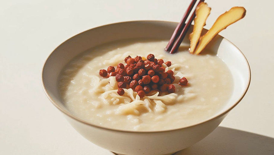 做法:將乾薑、高良薑洗淨,切片﹔花椒洗淨,以四層白紗布袋盛之備用,取粳米淨水淘洗乾淨,置於砂鍋內加水熬至五六分熟時,加入白紗布袋中,同煮20分鐘﹔取出白紗布袋,繼續熬粥至熟爛(若粥已爛熟則不用再煮)即可。