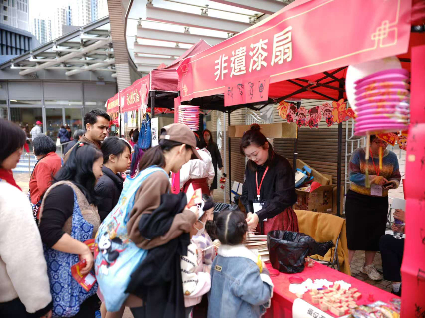 現場的猜燈謎遊戲,謎底有傳統典故,也有現代知識,吸引不少市民駐足參與。嘉年華還設有中華文化展覽區,從剪紙春聯到非遺漆扇,從傳統服飾到現代文創,都承載着中華文化的深厚底蘊,市民還可以通過現場講解員的介紹,了解背後的歷史故事和文化內涵。