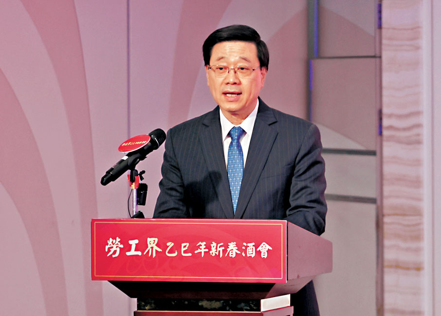 李家超致辭時表示,過去一年,香港社會在各界齊心協力下穩步前進。根據最新估算,去年全年的本地生產總值,較前一年上升2.5%,失業率維持在3.1%的低水平,至於工資方面,最新的數字顯示,去年9月錄得的平均工資率較前一年上升3.6%。「香港經濟逐步復甦,民生持續改善,每一位勞工的勤奮付出都至關重要。」