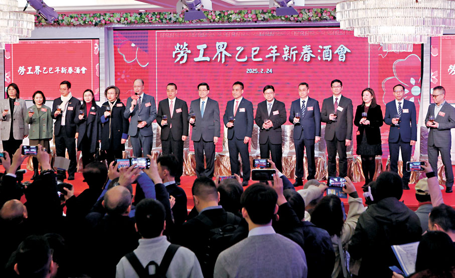 為加強勞工界團體的交流,促進勞工團體與各界的團結和合作,香港勞工界人士和多個工會團體昨晚聯合舉辦勞工界乙巳年新春酒會。出席酒會的香港特區行政長官李家超致辭時指出,勞工是香港經濟的基石,特區政府重視保障勞工權益,計劃今年4月提交《僱傭條例》修訂草案,其中包括修訂《僱傭條例》中連續性合約的規定,讓更多工時較短的僱員,也可以獲得更多僱傭福利。 ●香港文匯報記者 黃子龍