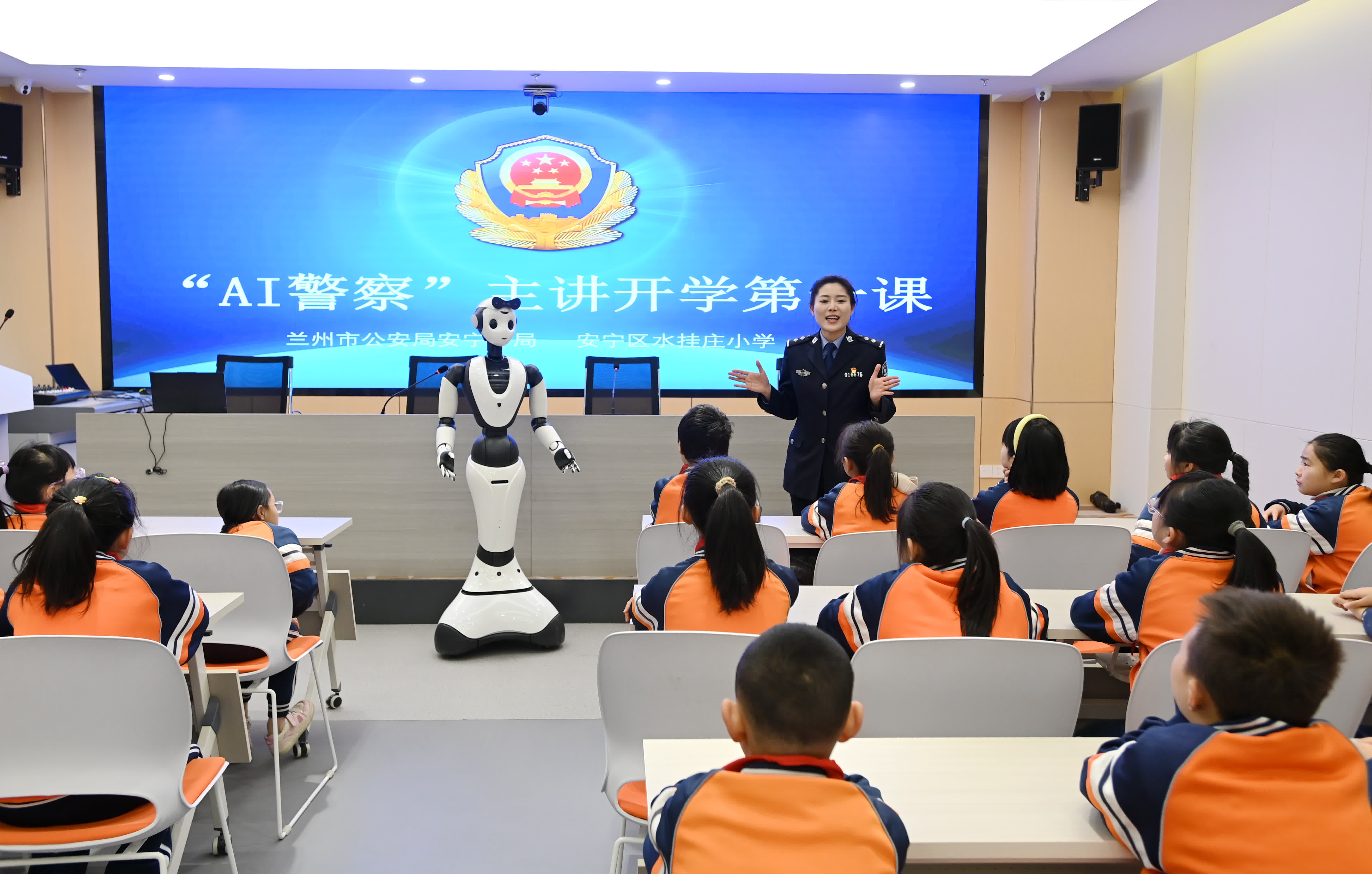 蘭州市公安局治安支隊負責人介紹,當前正值全市中小學校開學季,蘭州市公安局及時跟進當前智能人形機器人和DeepSeek大模型等技術發展熱點,以新技術、新裝備等科技手段賦能現代警務,引入「AI警察」講授開學「法治教育第一課」,圍繞校園防詐騙、防欺凌、防溺水、交通安全等主題,通過數據建模、虛擬仿真等科技手段,為中小學校師生呈現了一堂兼具溫度與深度的安全教育課。