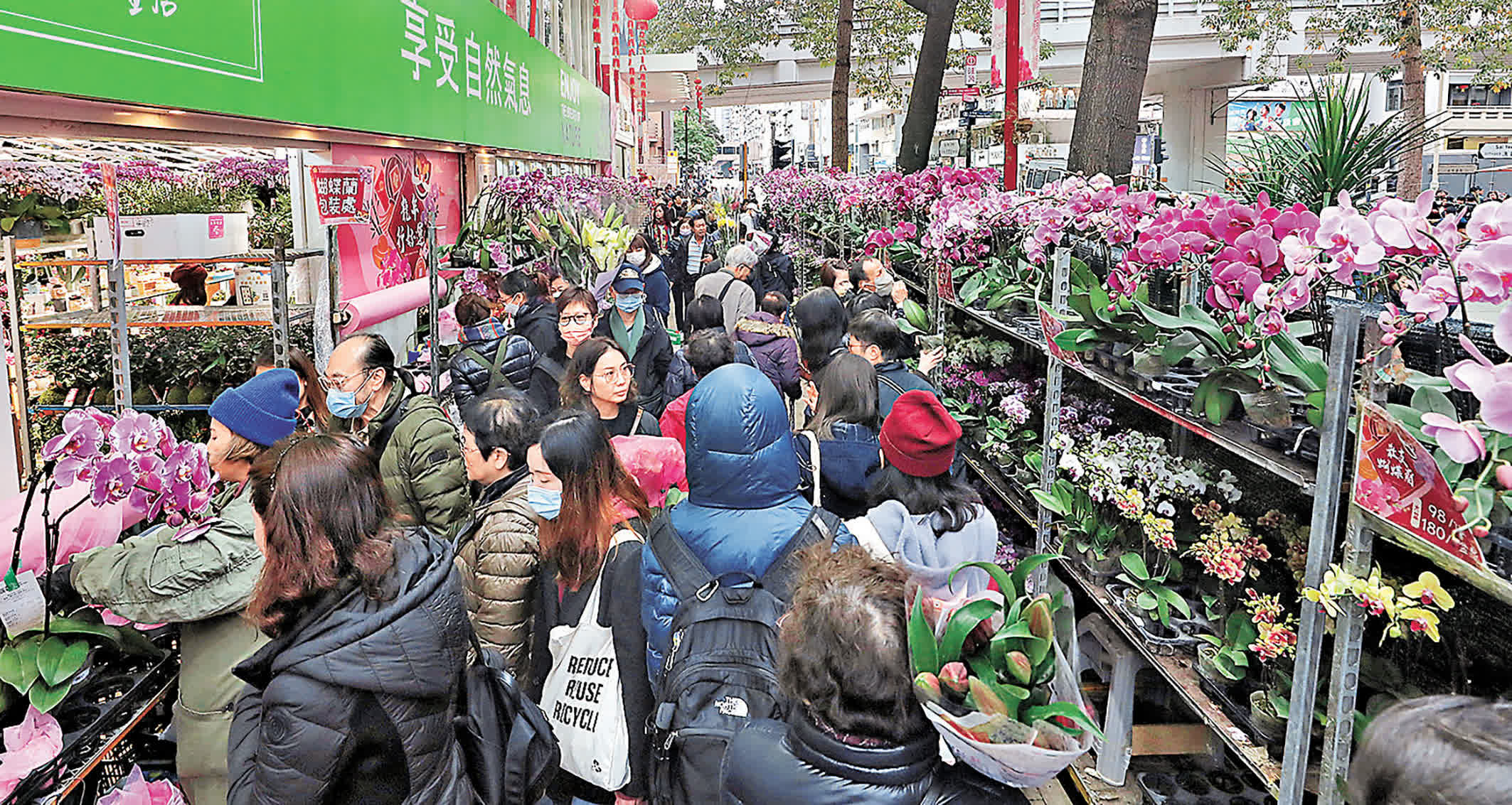 位於旺角的花墟滿街花香,色彩繽紛。這裏有近百家零售和批發鮮花的商店,售賣來自香港新界和世界各地的鮮花、仿真花及盆栽。除了蘭花、白合、菊花等百花爭艷,園藝用品也很齊備,來到這裏就好像逛園藝超市一樣。