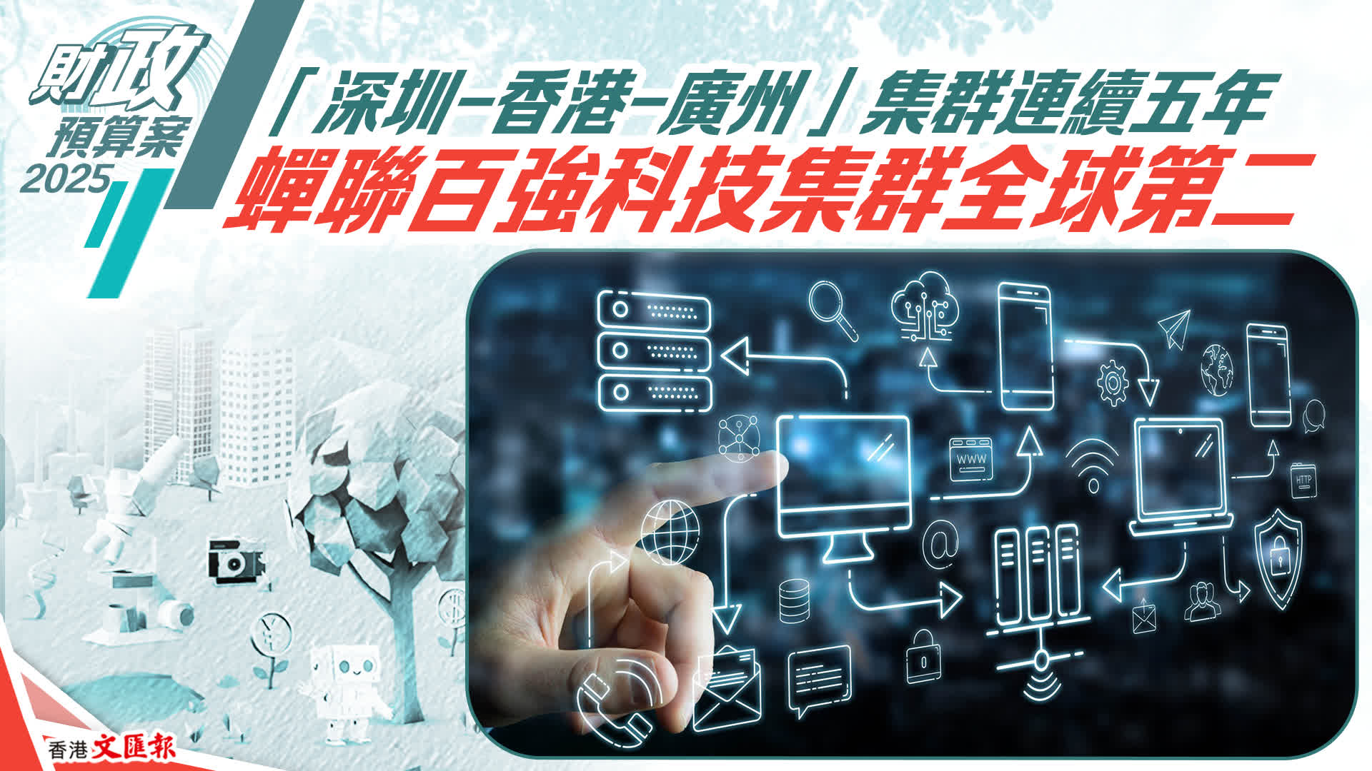 2025年2月26日,財政司司長陳茂波發表2025-26年度《財政預算案》。陳茂波表示,在世界知識產權組織(WIPO)《二零二四年全球創新指數》百強科技集群中,「深圳—香港—廣州」集群已連續五年蟬聯全球第二位。