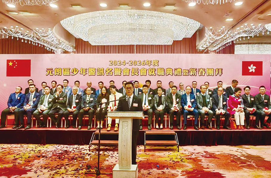 2024至2026年度元朗區少年警訊名譽會長會就職典禮暨新春團拜日前假元朗紅爵御宴舉行,邀得中央政府駐港聯絡辦新界工作部副部長王卉、民政事務總署元朗民政事務專員胡天祐、香港警務處元朗區指揮官陳金菊、社會福利署元朗區福利專員石陳麗樺及元朗區撲滅罪行委員會主席陳建業出席主禮,與現場逾700位嘉賓及會員同歡共慶。