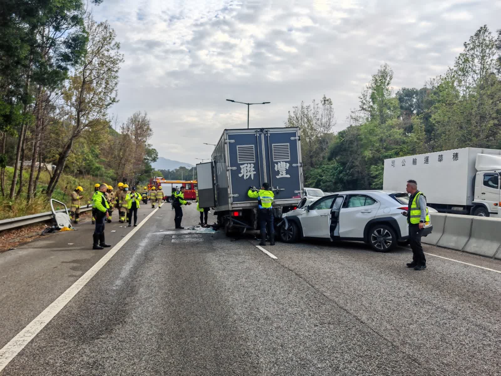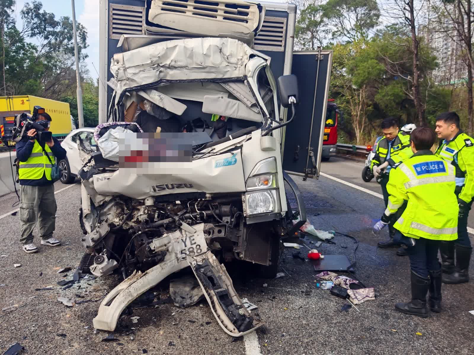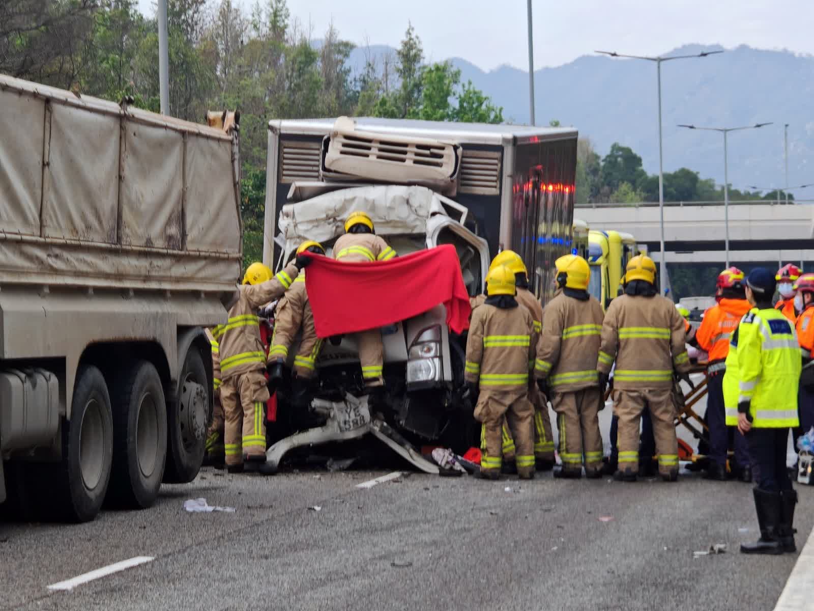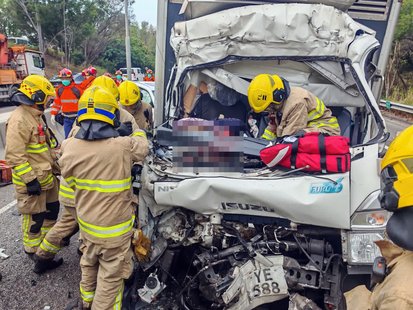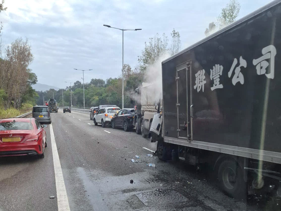 元朗公路往元朗方向近十八鄉交匯處發生七車相撞意外,涉及貨車和私家車,其中一輛冷藏輕型貨車司機一度被困,其後被救出,送院搶救後不治。