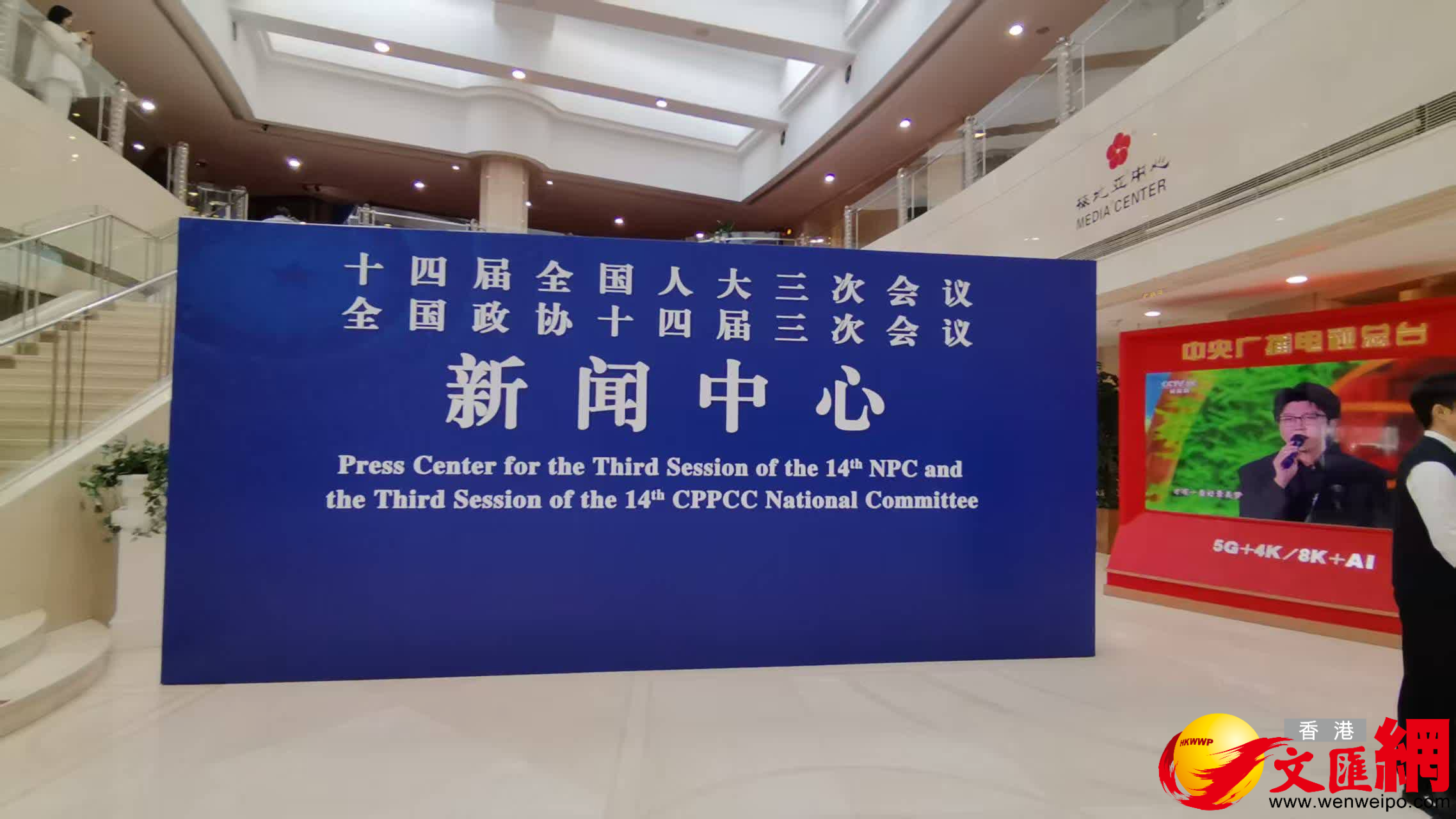 本次兩會新聞中心設在北京西長安街北側梅地亞中心。梅地亞中心附近有軍事博物館,記者27日上午來到現場看到,寫有「十四屆全國人大三次會議 全國政協十四屆三次會議 新聞中心」的藍色展板,已被擺放在梅地亞中心一樓入口處,藍底白字非常醒目。現場陸續有媒體前來新聞中心領取相關採訪證件。