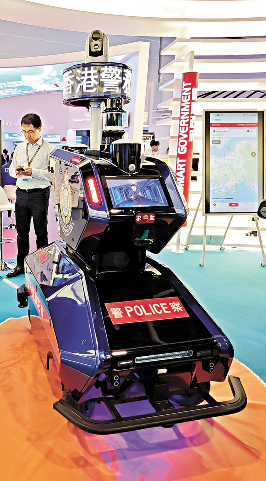 據深圳市公安局介紹,巡邏機械人能識別可疑物品、提供報警指引,並能用多國語言服務外籍遊客。