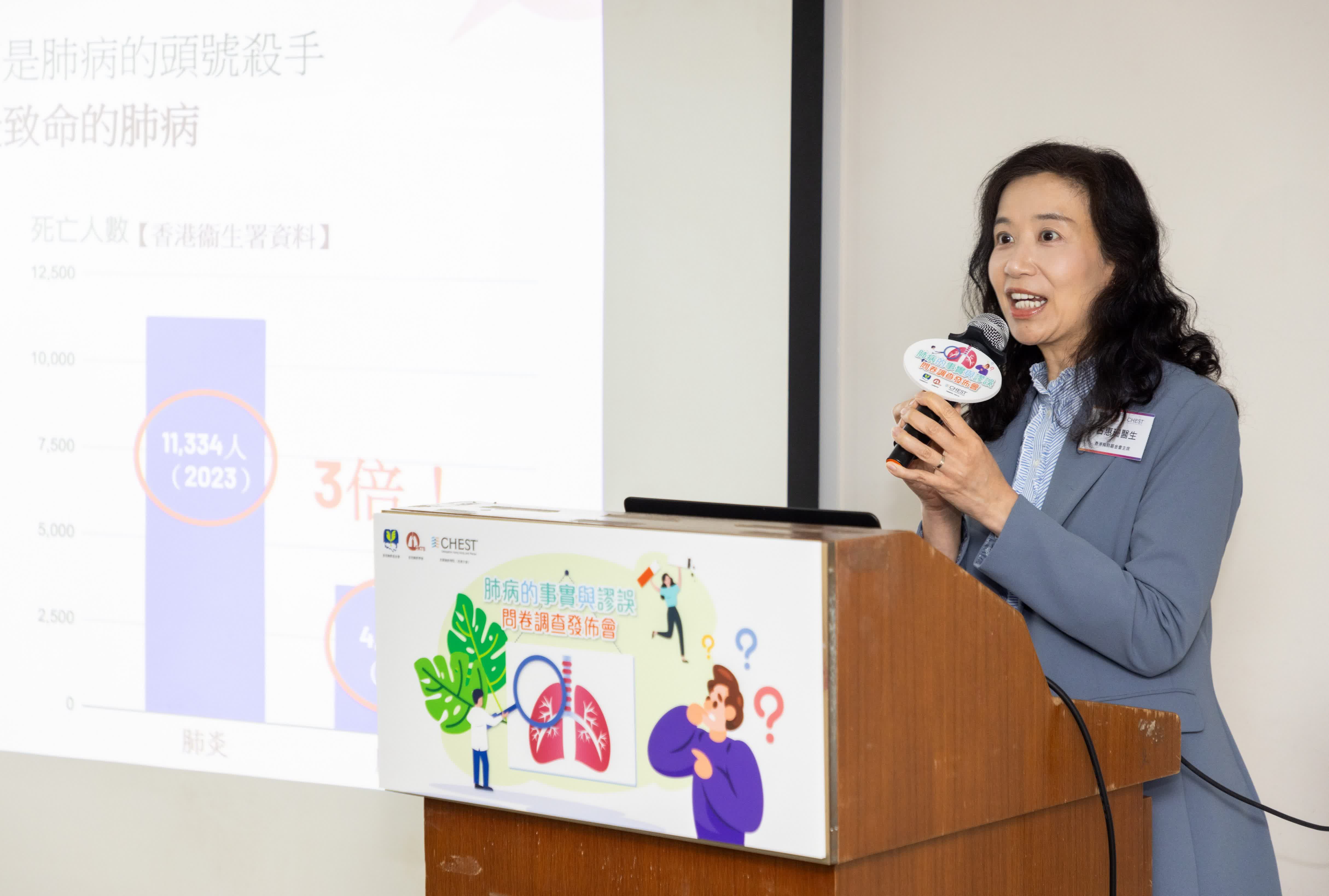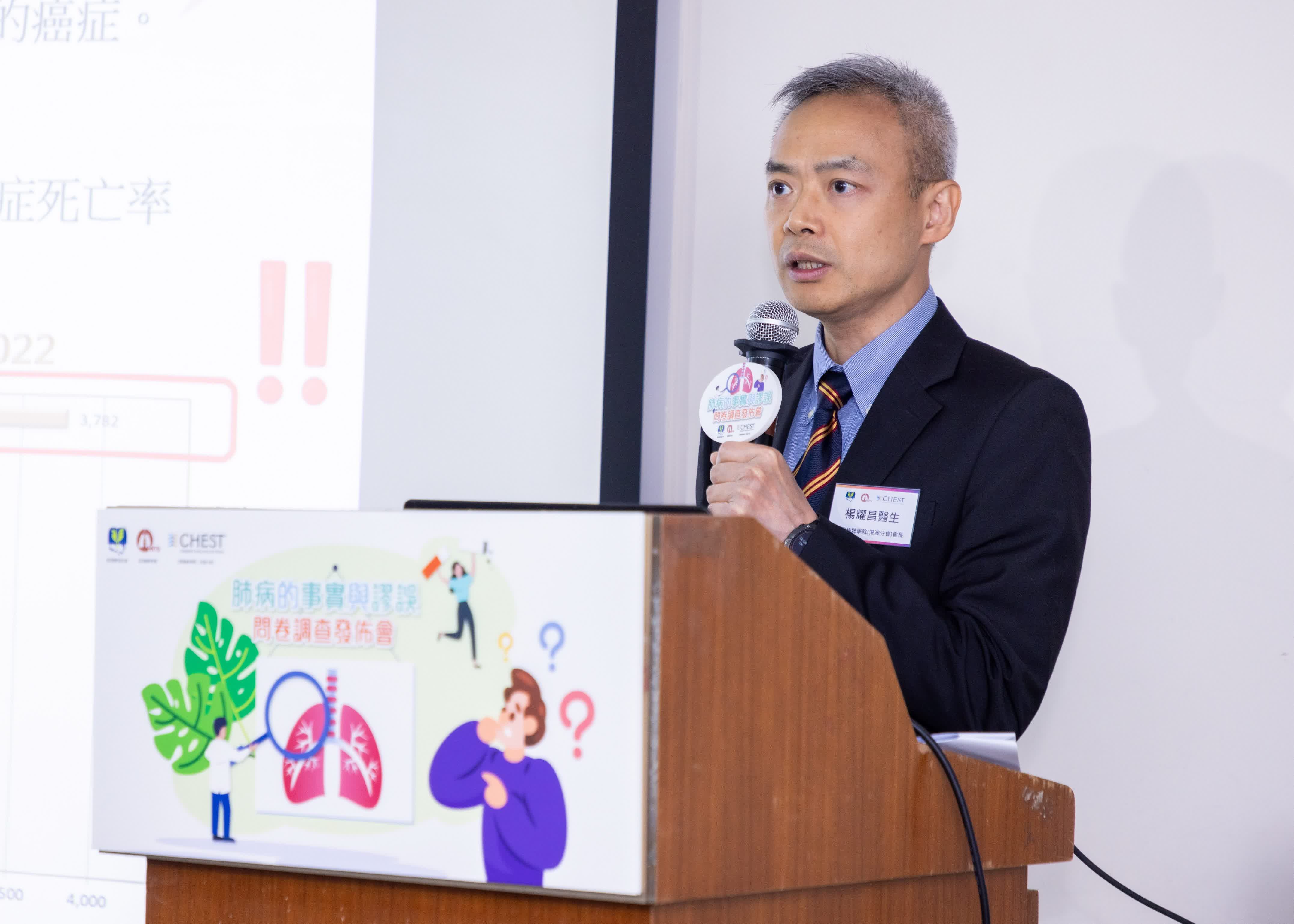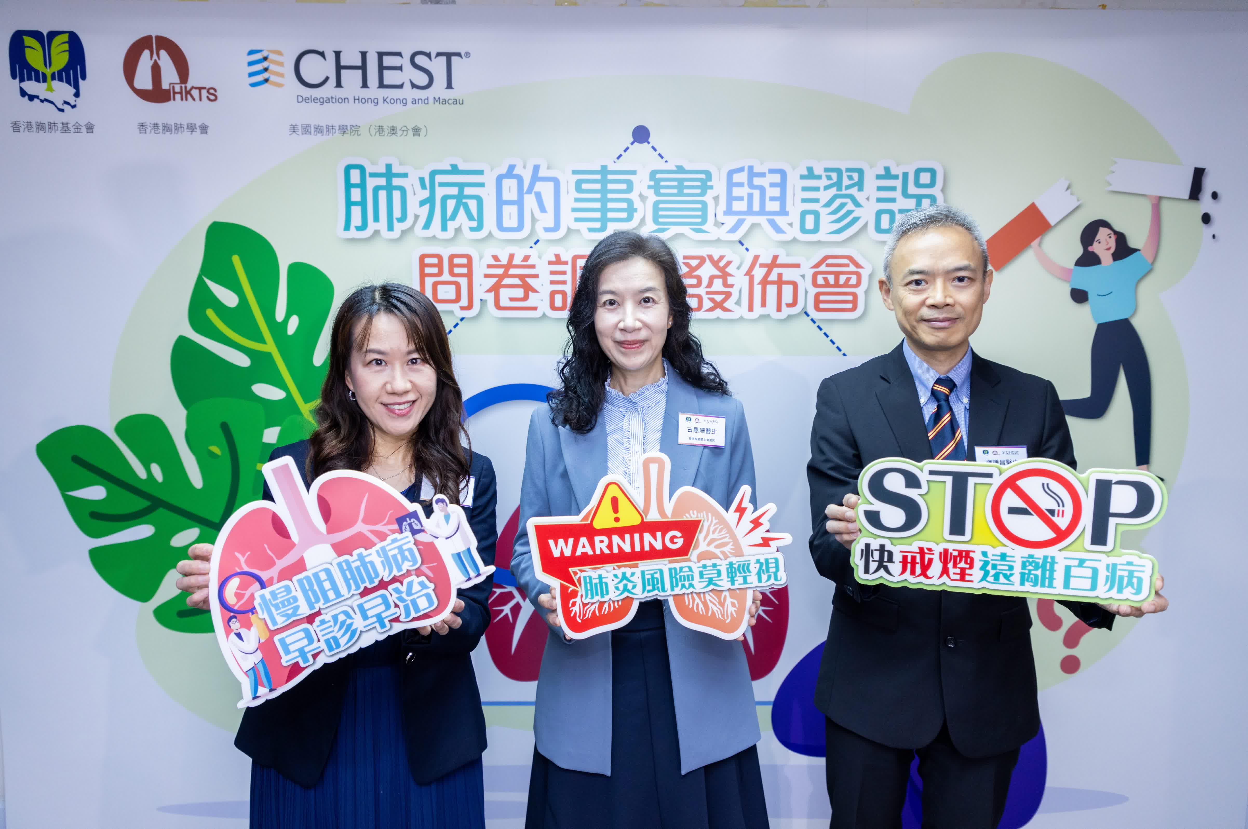 調查亦發現,對於高踞全港十大致命疾病的慢阻肺病,六成人答錯其典型病徵,一半人對其病因、高危群組及禁忌存在誤解。受訪者對於死亡率極高的肺纖維化亦認知不足,逾六成人答錯其起因、診斷和治療的問題。反映公眾對肺病的認知仍有待提升。