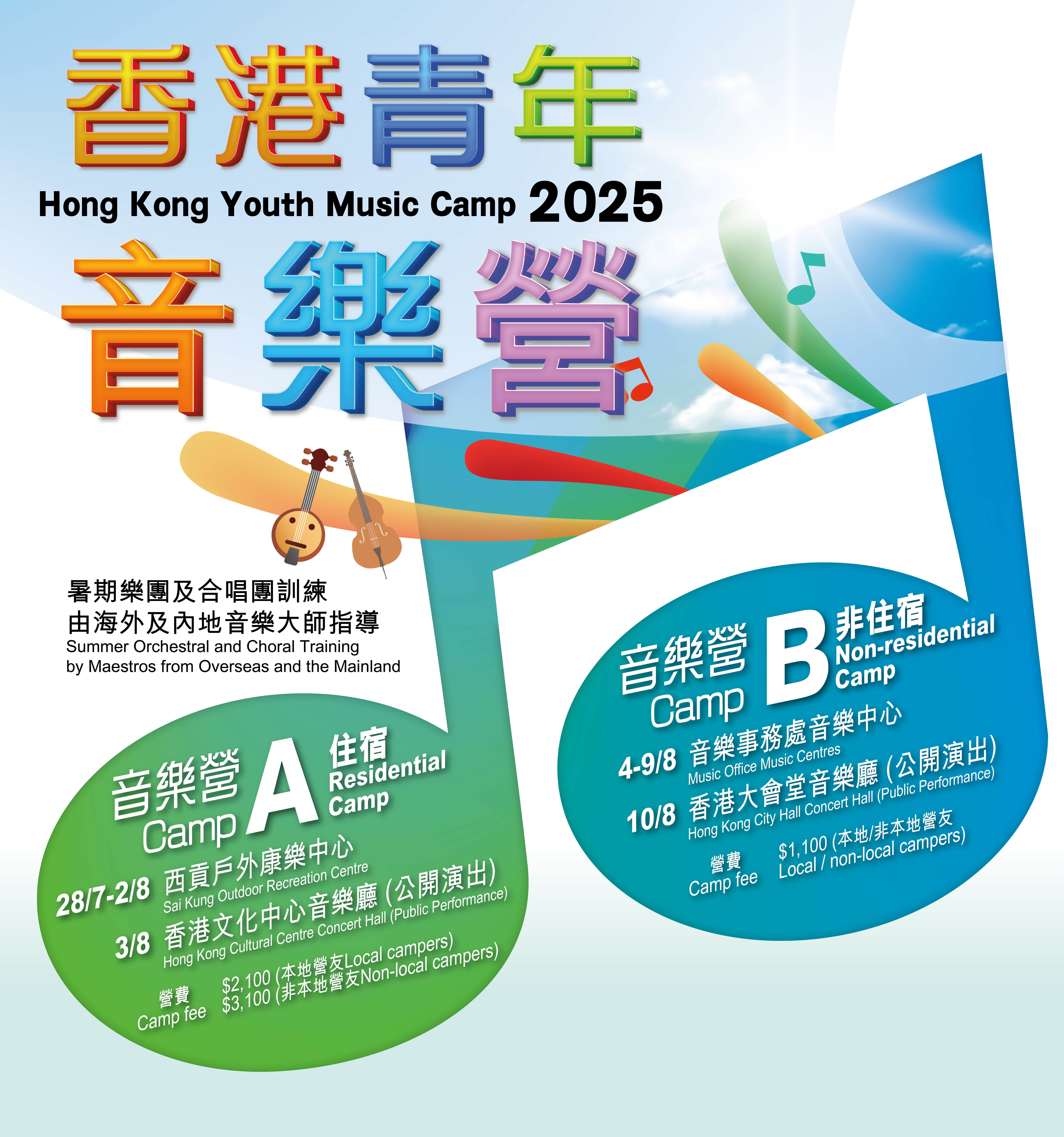 音樂營A提供住宿訓練,由7月28日至8月2日於西貢戶外康樂中心舉行,現招募中樂團、交響樂團及兒童合唱團團員。本地申請者宿營費為每位2100元,非本地申請者宿營費為每位3100元。音樂營指揮為西安音樂學院民族管弦樂團團長兼常任指揮高偉、美國西北交響樂團音樂總監斯帕恩 和保加利亞國立音樂學院合唱指揮教授兼指揮系主任帕羅薇琪 教授。