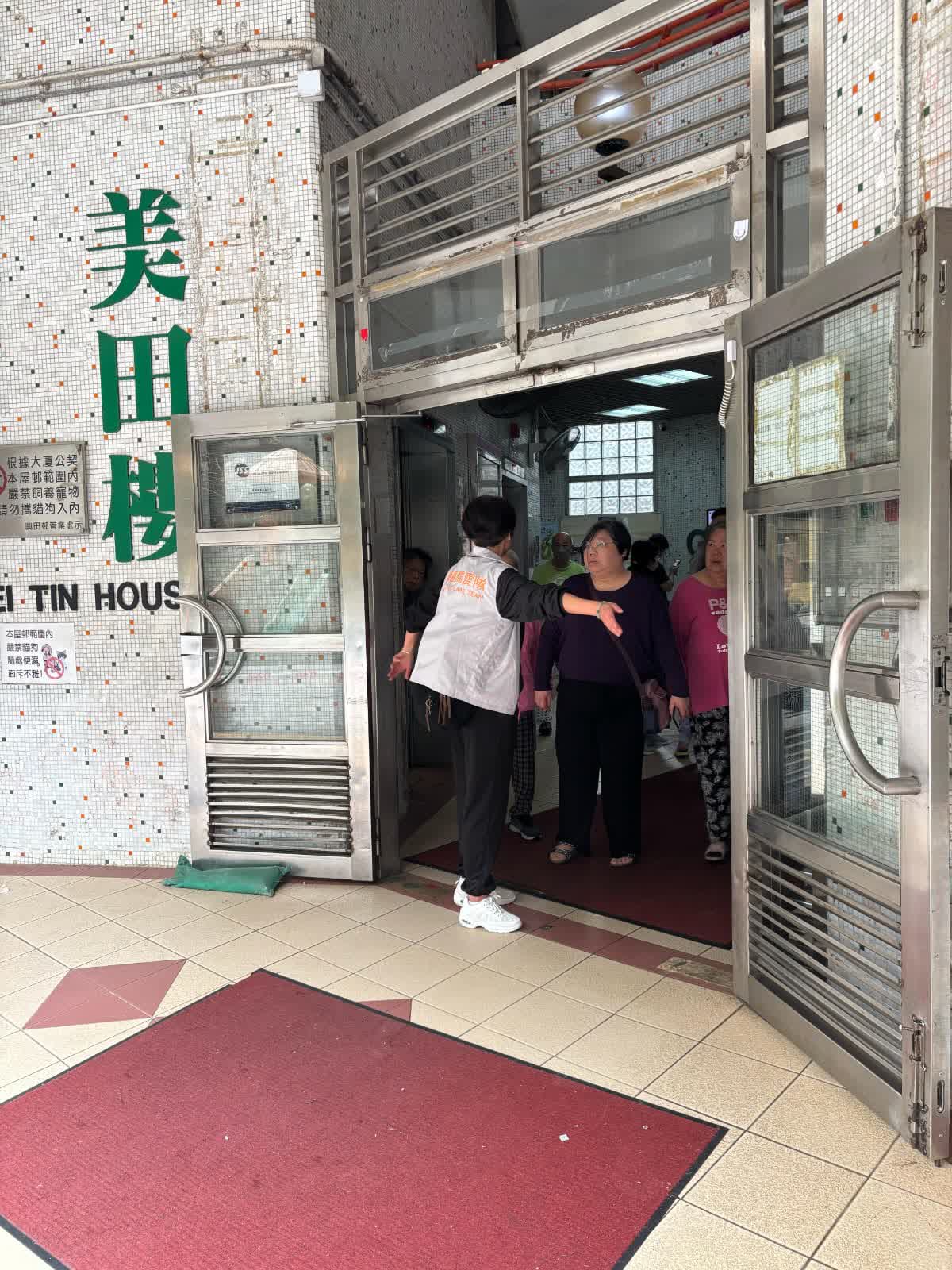 余邵倫表示,暫時未能開放給居民上樓,有需要的居民可到 「彩田樓長者中心」或位於興田商場的 「藍田獅子會日間中心 」稍作休息暫避。