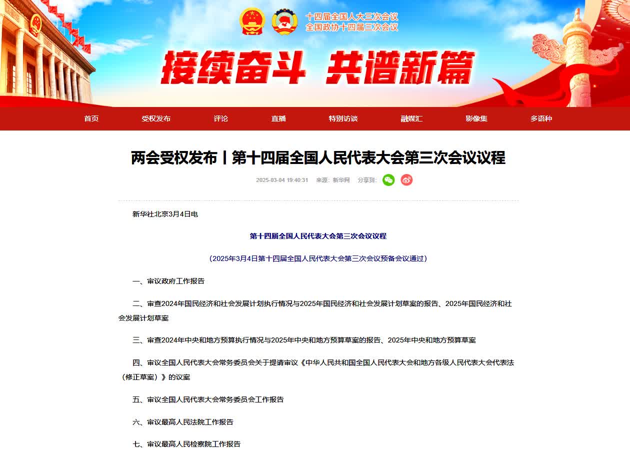 (2025年3月4日第十四屆全國人民代表大會第三次會議預備會議通過)