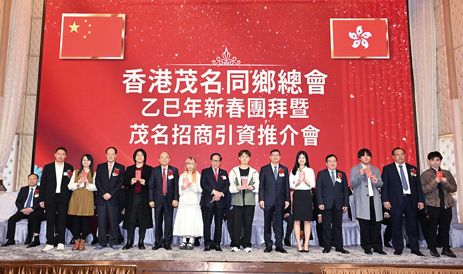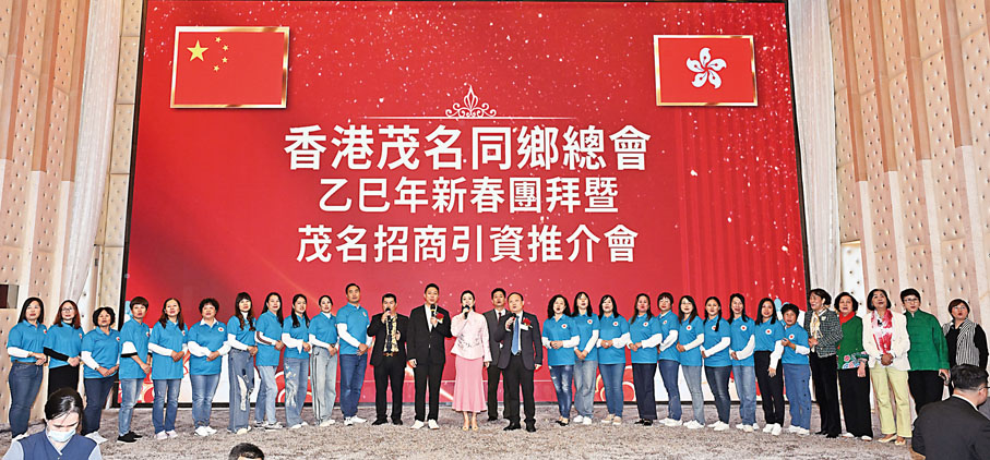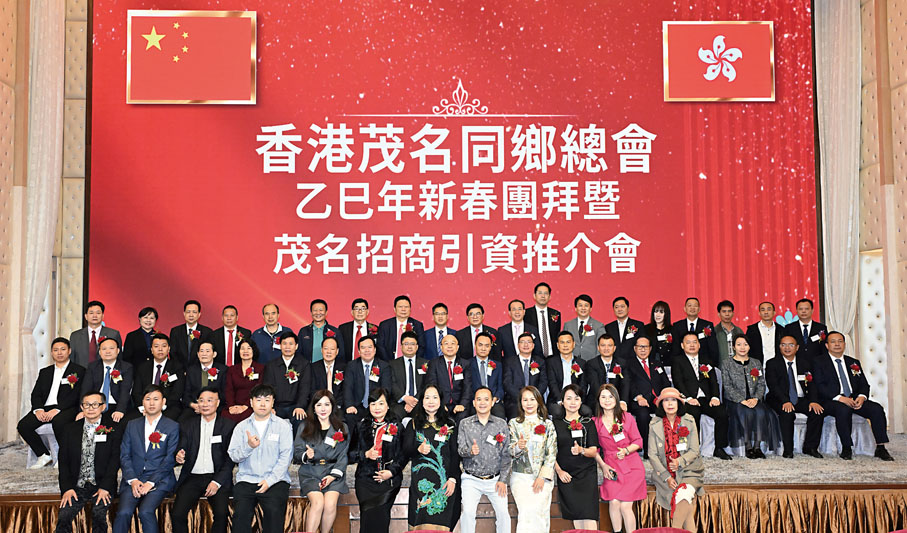 香港茂名同鄉總會(下簡稱「茂總」)於3月1日假九龍灣百樂金宴國際宴會廳舉行香港茂名同鄉總會乙巳年新春團拜暨茂名招商引資推介會。活動邀得中央政府駐港聯絡辦社聯部副部長余學傑,中央政府駐港聯絡辦新界工作部副部長王卉,中央政府駐港聯絡辦港島工作部處長任海天,茂名市委常委、統戰部部長吳衛華,茂名市政協黨組副書記、副主席楊培基等出席主禮,與茂總首長及會員共聚一堂慶賀新春。