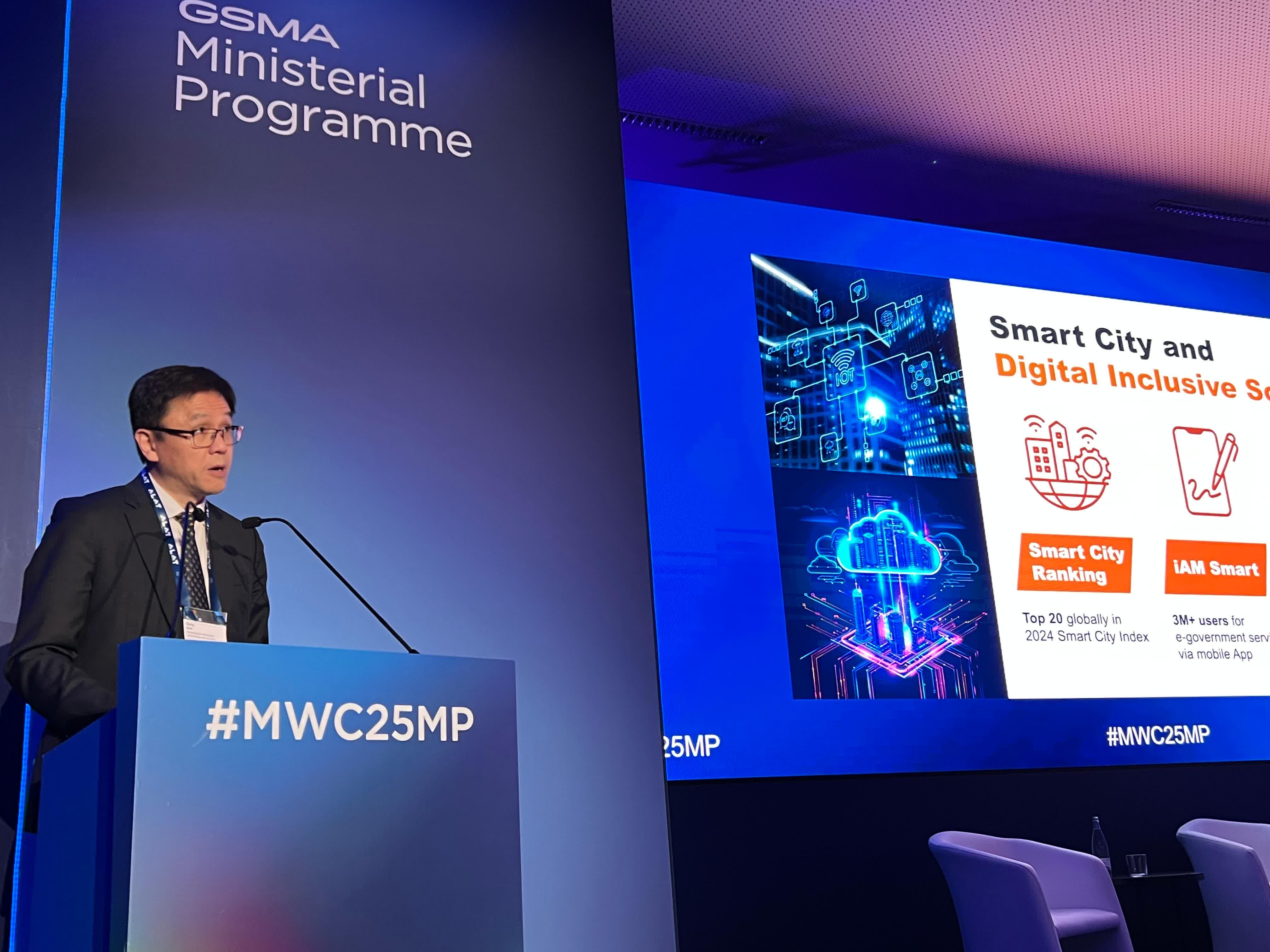 創新科技及工業局局長孫東3月5日(巴塞羅那時間)率領創新科技業界代表團繼續在西班牙巴塞羅那的訪問行程,並出席世界移動通信大會2025。他在全球移動通信系統協會(GSMA)部長級會議「2025+: A Tech Odyssey」環節中發表主旨演講時指出,香港正致力於建設智慧城市與數碼共融社會,以消除數碼隔閡。