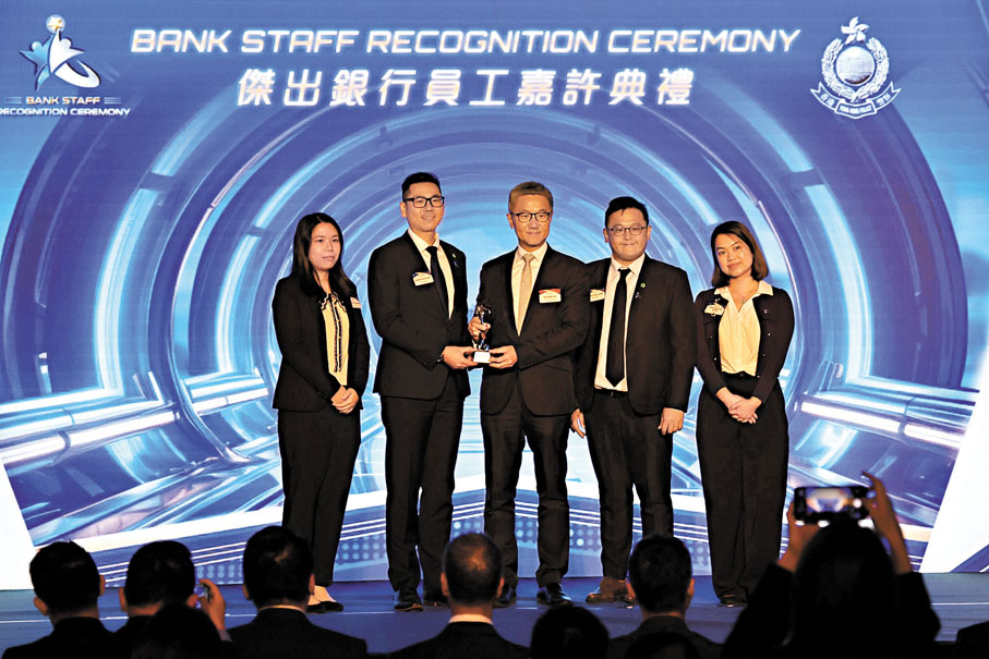 香港文匯報訊(記者 李芷珊)警務處昨日舉行2025傑出銀行員工嘉許典禮,表彰銀行業界在防騙工作上的卓越貢獻,18間銀行共獲11個企業獎項,有368位員工協助警方識別及勸阻425宗騙案獲嘉許證書,當中有9名最傑出表現的銀行員工,獲頒傑出銀行員工大獎,有銀行代表表示,銀行已利用科技包括人工智能(AI)系統深度分析詐騙模式和客戶資料,及早識別可疑交易,以及阻止不法分子開設傀儡戶口,有銀行曾成功阻止長者被騙200萬元。