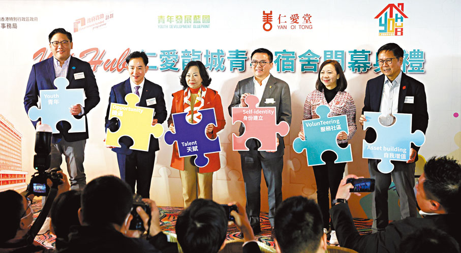 特區政府多管齊下扶持青年,並推出青年宿舍計劃,為在職青年提供更多居住空間。仁愛堂昨日為「YOT Hub 仁愛龍城青年宿舍」項目舉行開幕禮,該項目可提供最多160個宿位,月租介乎4,500元至4,650元。有青年宿生表示,入住後可按個人興趣自主參與不同「STAY FUN」活動,與其他宿生互相交流學習,拓闊人際網絡。香港特區政府民政及青年事務局局長麥美娟致辭時表示,政府於2023年起資助非政府機構租用酒店和旅館,並將房間轉作青年宿舍用途,至今批出5個項目(包括YOT Hub在內)共提供約1,300個宿位。連同早前推出、全數資助非政府機構興建青年宿舍的「青年宿舍計劃」,兩個計劃合共提供逾3,000個青年宿舍宿位,遠超本屆政府上任時的80個。●香港文匯報記者 洪澤楷