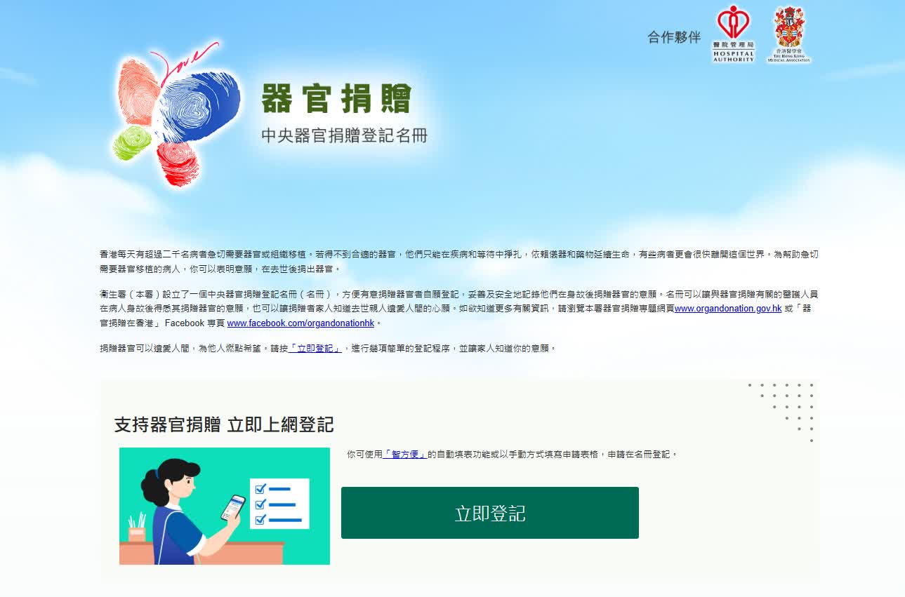 市民可於上述時段之前或後,如常進行預約/登記。此外,「中央器官捐贈登記名冊」網頁服務暫停期間,市民如有需要可到器官捐贈專題網站下載登記表格,以傳真方式遞交。